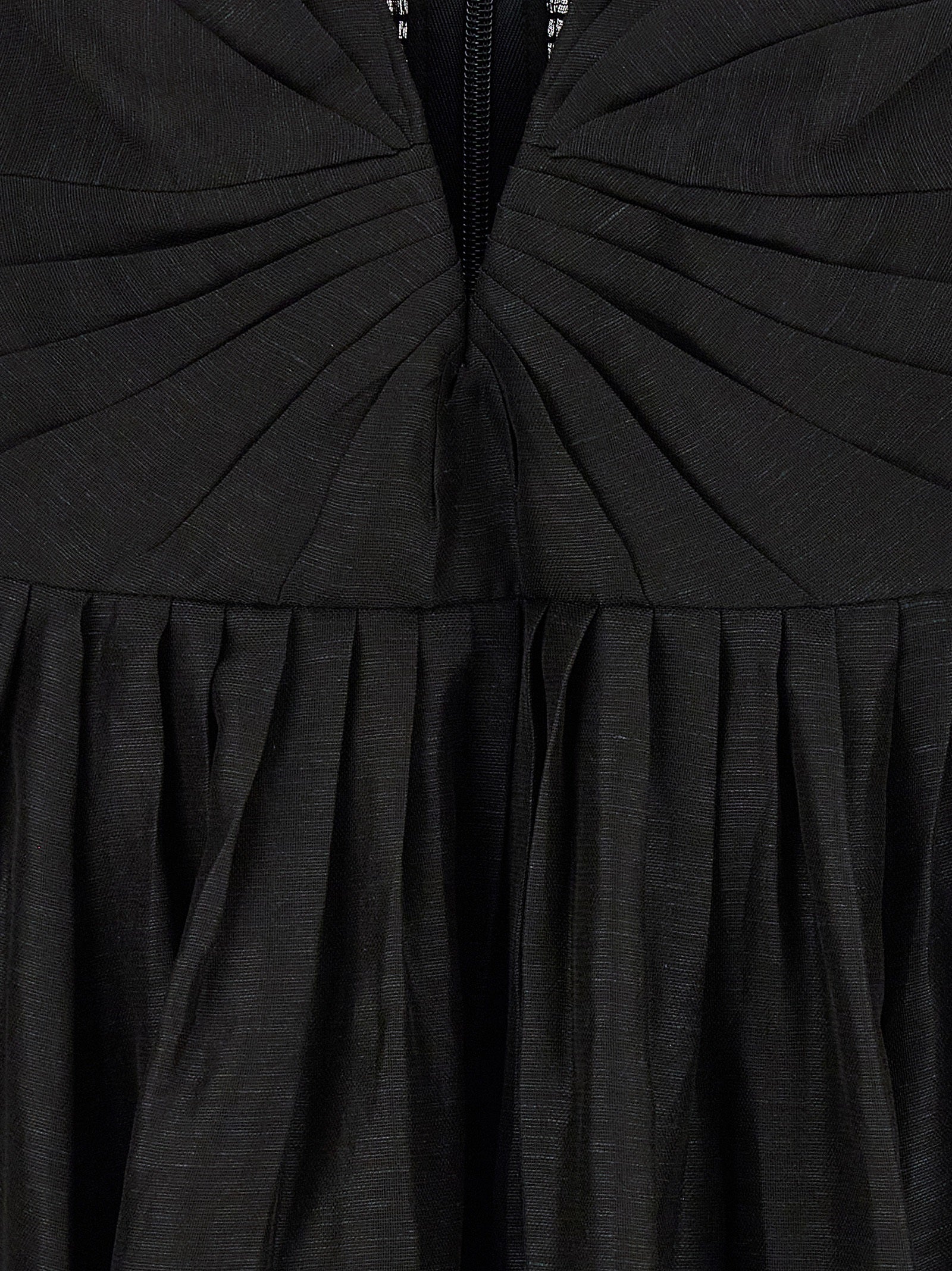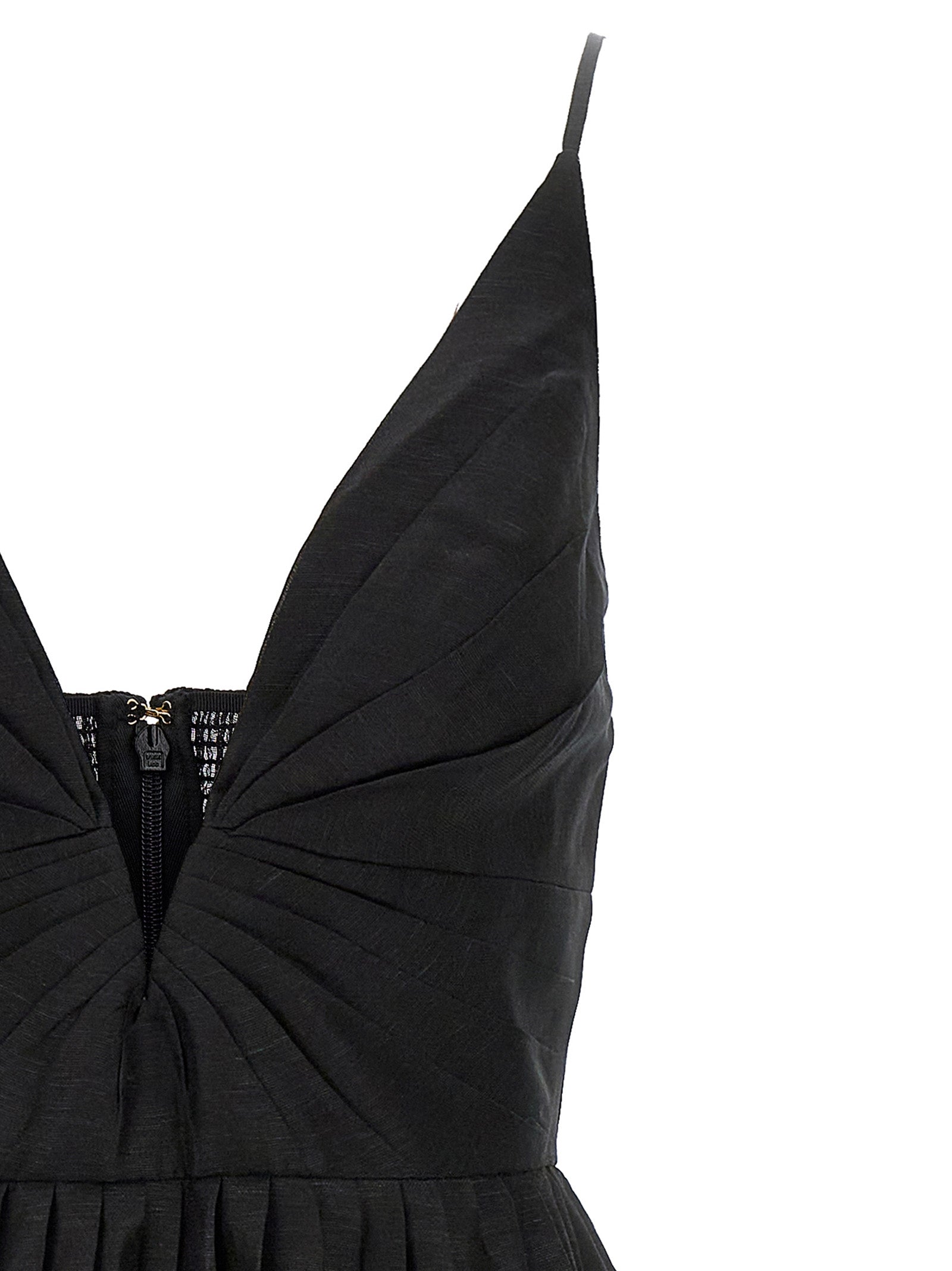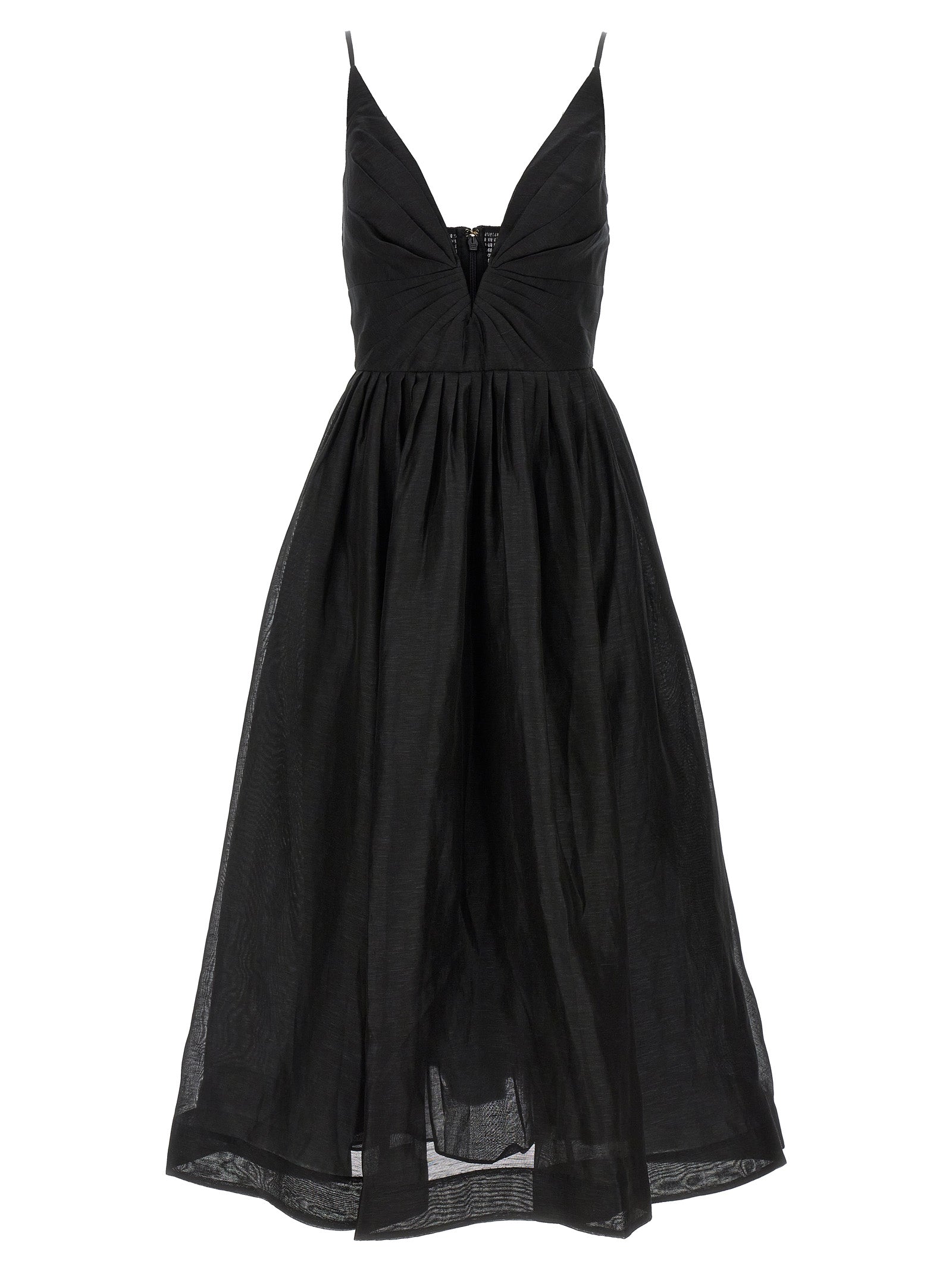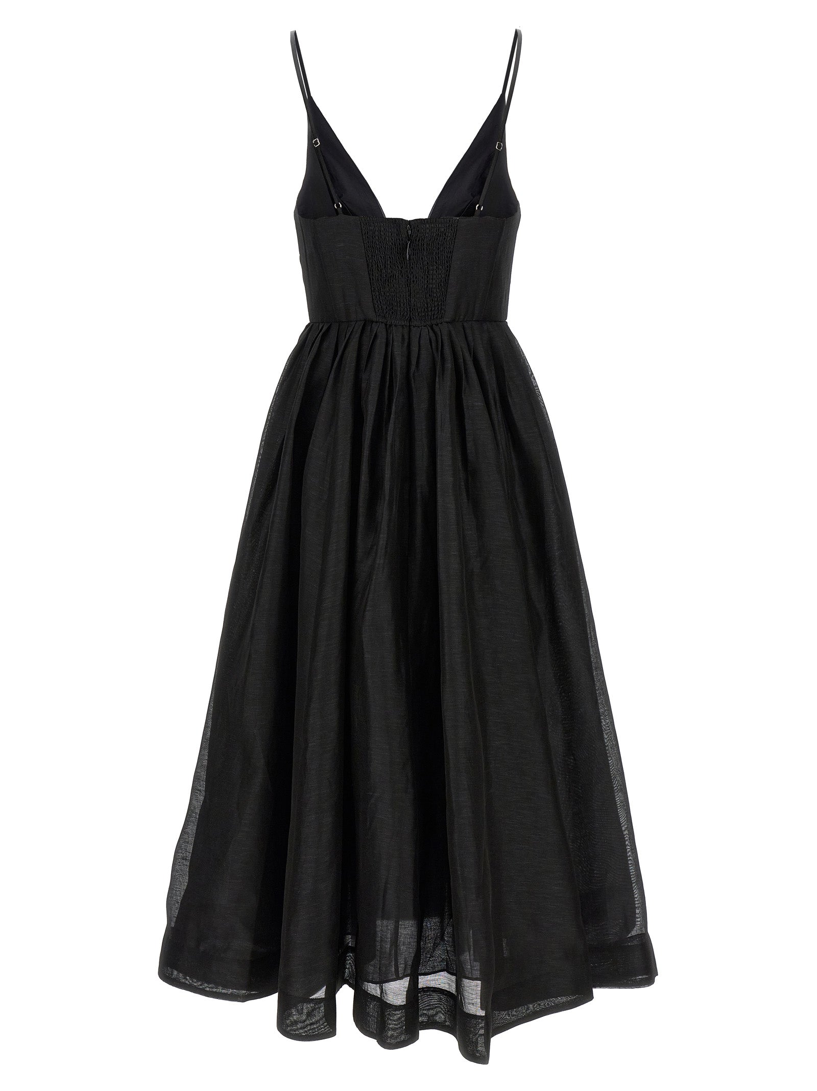 ILLUSTRAZIONE V ASSTOLE MIDI MIDI in lino inameroso e miscela di seta, chiusura del punto con zip posteriore e slap, scollo a V, cinghie sottili e regolabili.