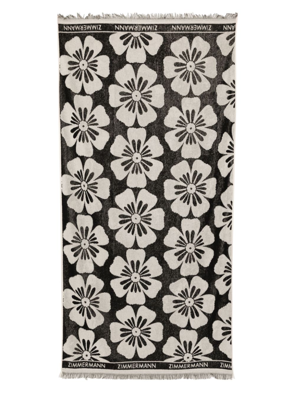 Asciugamano in cotone bianco/crema bianco Finitura floreale jacquard jacquard jacquard logo motivazione bordo frangiato forma