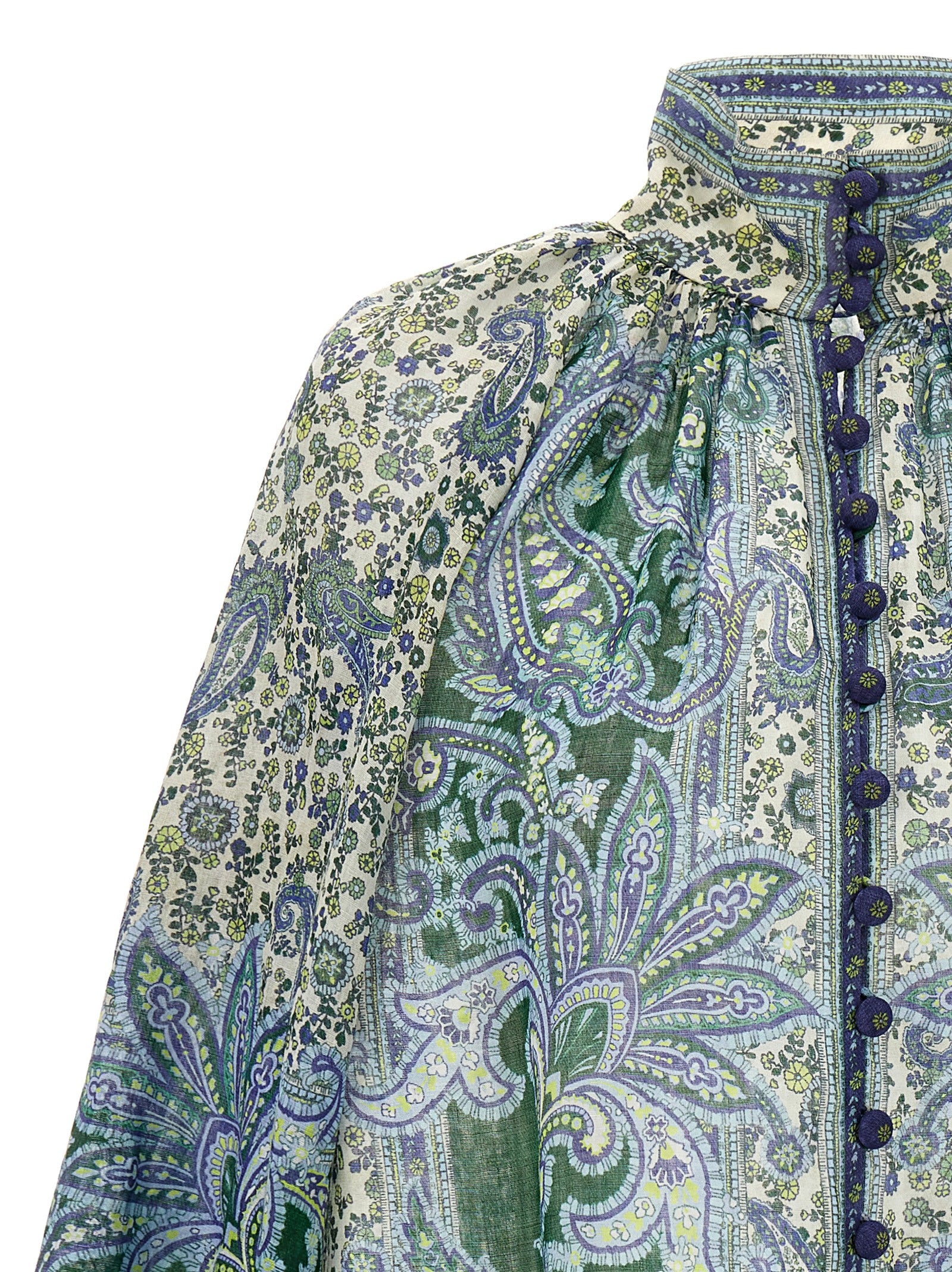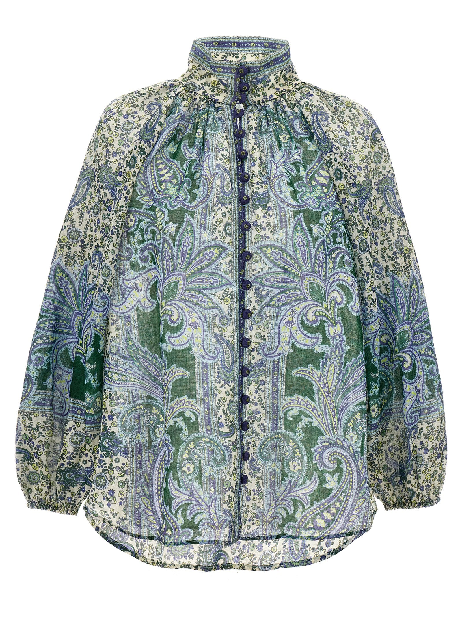 Camicia ramie "Ottie Billow" con stampa bandana con chiusura a bottone, collo alto, maniche lunghe con polsini elastici.