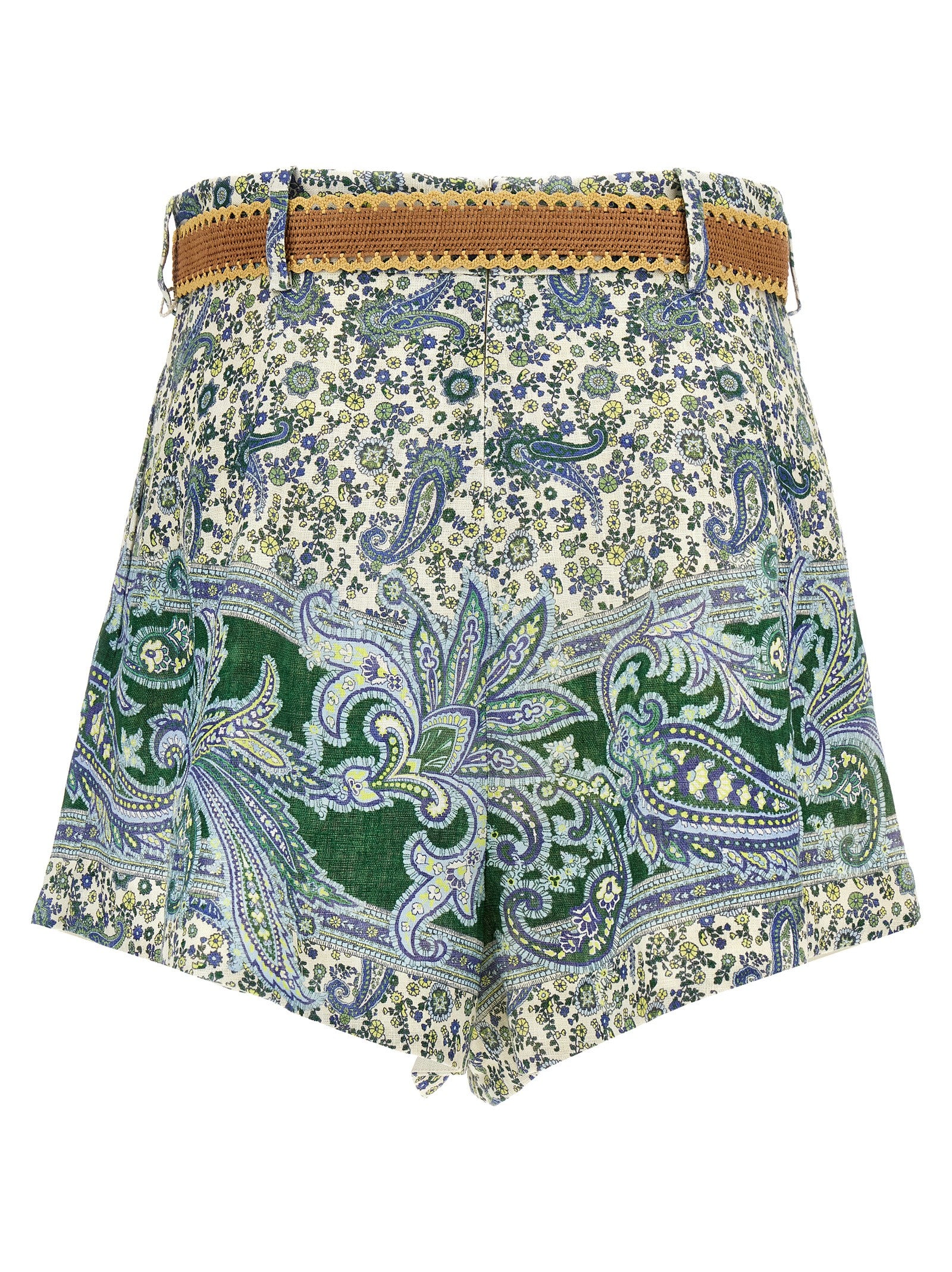 Shorti in lino-stampa paisley "Ottie Tuck", chiusura a zip posteriore, tasche, cintura in vita rimovibile.