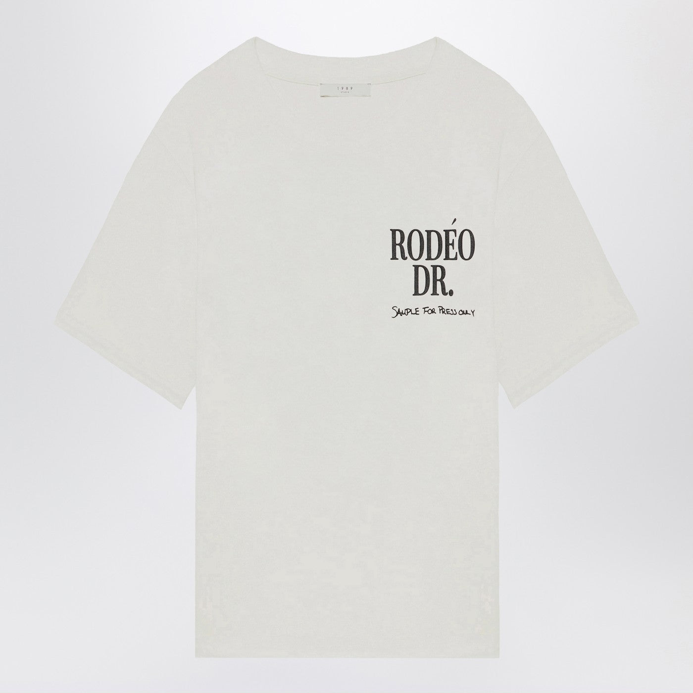 T-shirt in cotone da equipaggiamento di 1989 Studio con rodéo Drive Stampe sul petto e oh sul retro, piastra di logo in metallo sul retro, maniche corte e orlo dritto.