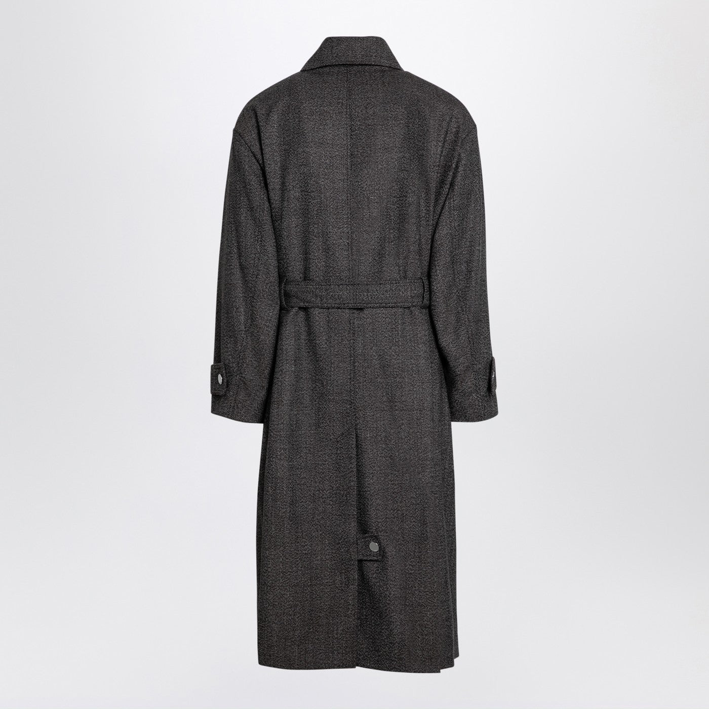 Lana e cotone miscela un cappotto a petto singolo di Ami Paris con trama marrone, con un collo a camicia, maniche lunghe con polsini regolabili, una cintura, una piaclicazione da pulsante anteriore, due tasche laterali e uno sfiato posteriore con un pulsante a scatto.