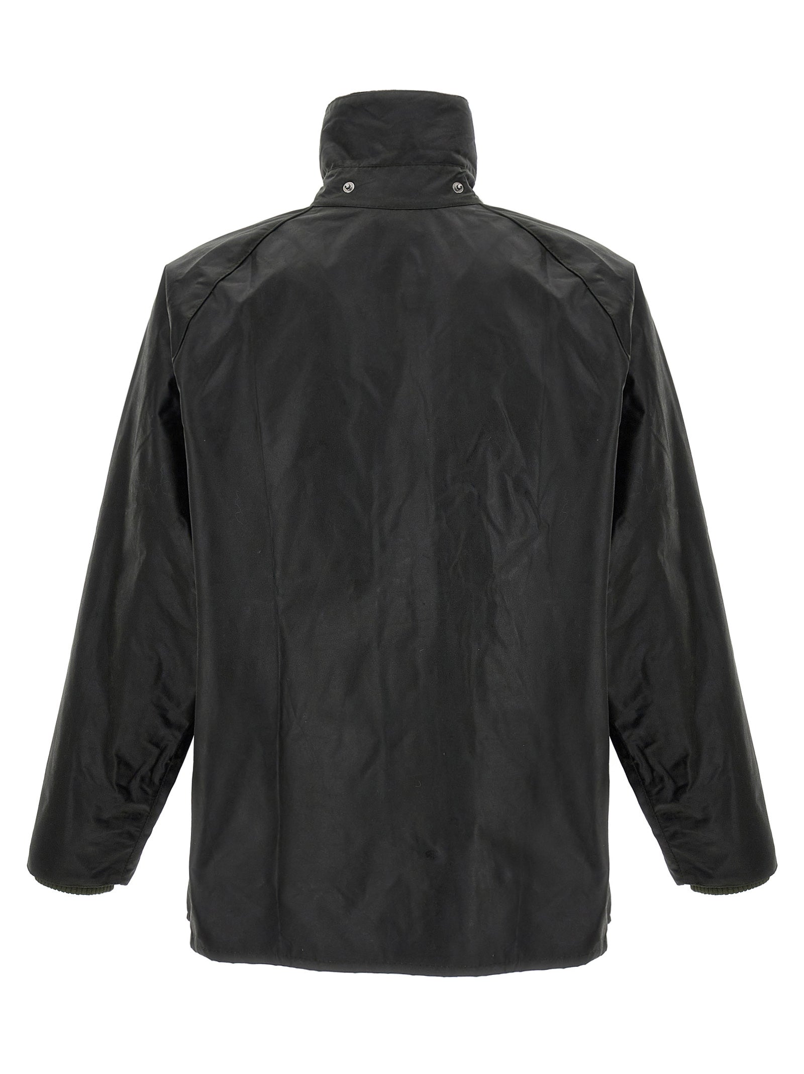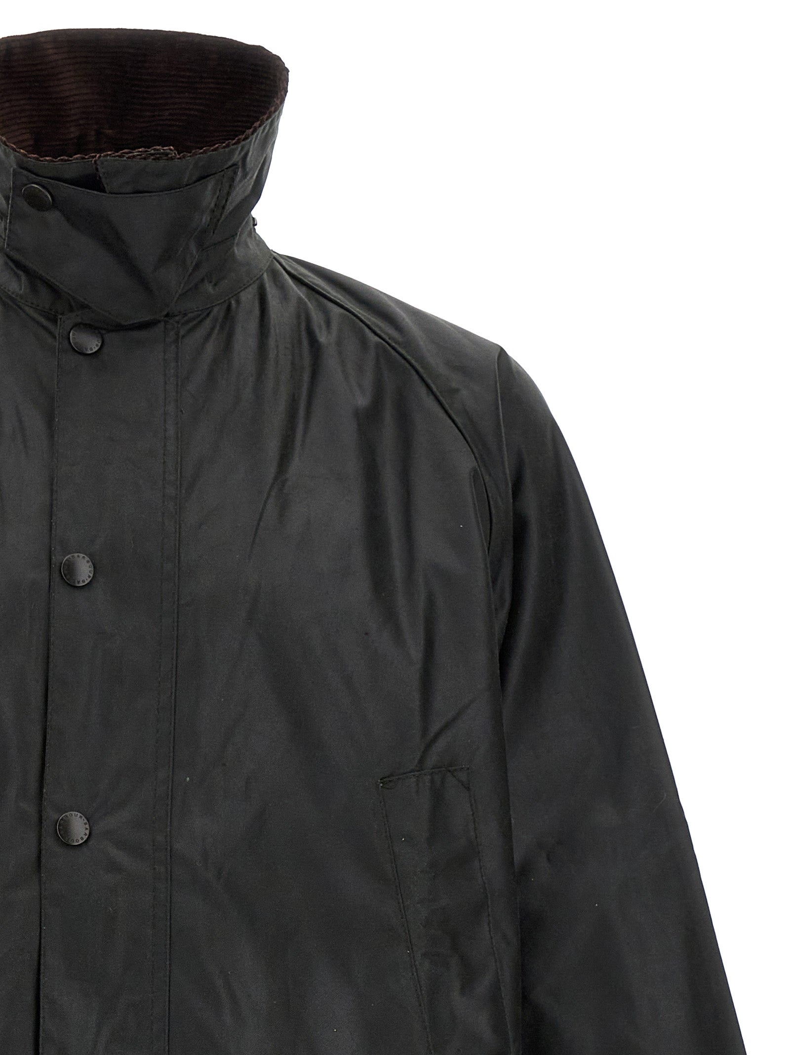 Giacca in cotone cerata 'bedale' con colletto di velluto a coste, doppia chiusura a zip e abbottoni, tasche, maniche lunghe, fessure laterali con bottoni.