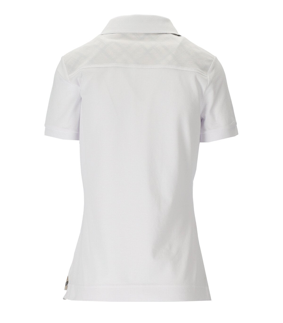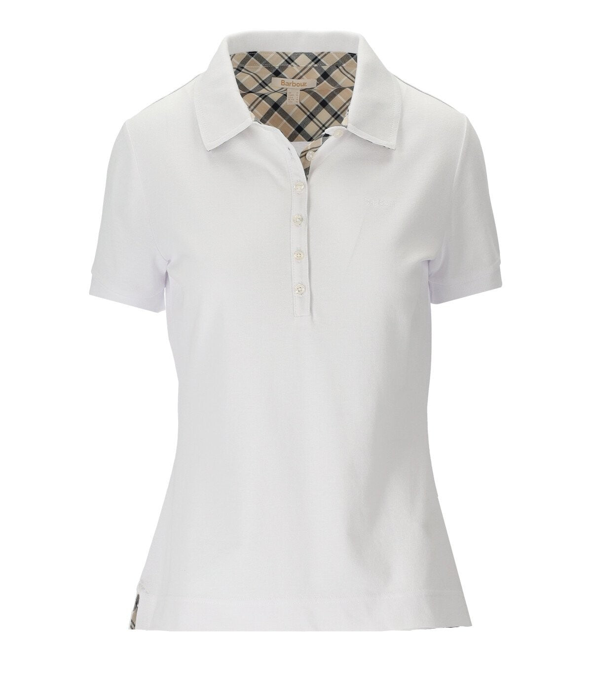 Barbour Polo Shirt fatta di cotone pique bianco con inserti nel motivo tartan beige. Logo ricamato sul petto, chiusura dei pulsanti e piccole fessure laterali. Composizione: 94% di cotone, 6% elastano.