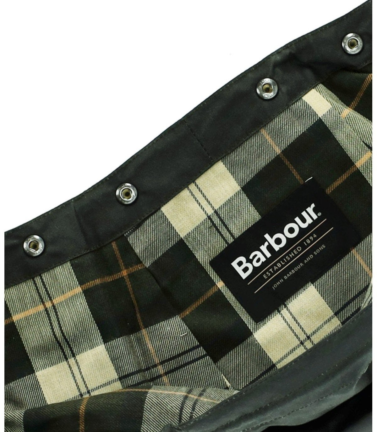 Barbour Waxed Hood made of waxed cotton in sage green. Characterized by a quilted check inner lining in typical Barbour Tartan fabric, it features sewn snap buttons to facilitate attachment to the compatible outerwear. Equipped with adjustable drawstrings on the sides. Outer composition: 100% waxed cotton. Lining: 100% cotton.