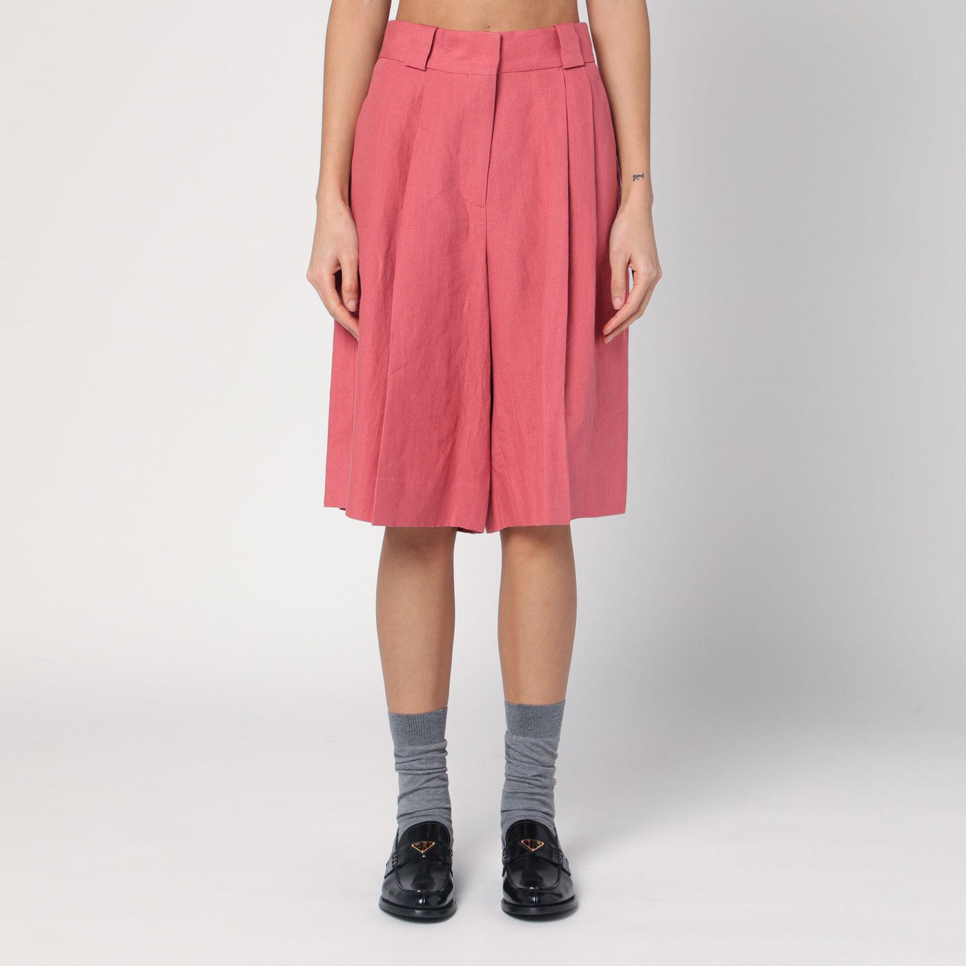Blazé Milano Wide Fuchsia Linen Bermuda Shorts