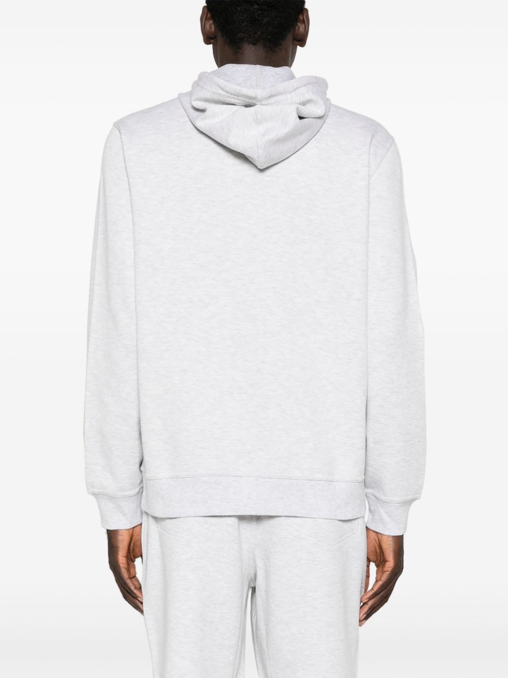 heather grey cotton blend jersey texture mélange effect drawstring hood front two-way zip fastening long sleeves two side pouch pockets ribbed cuffs and hem