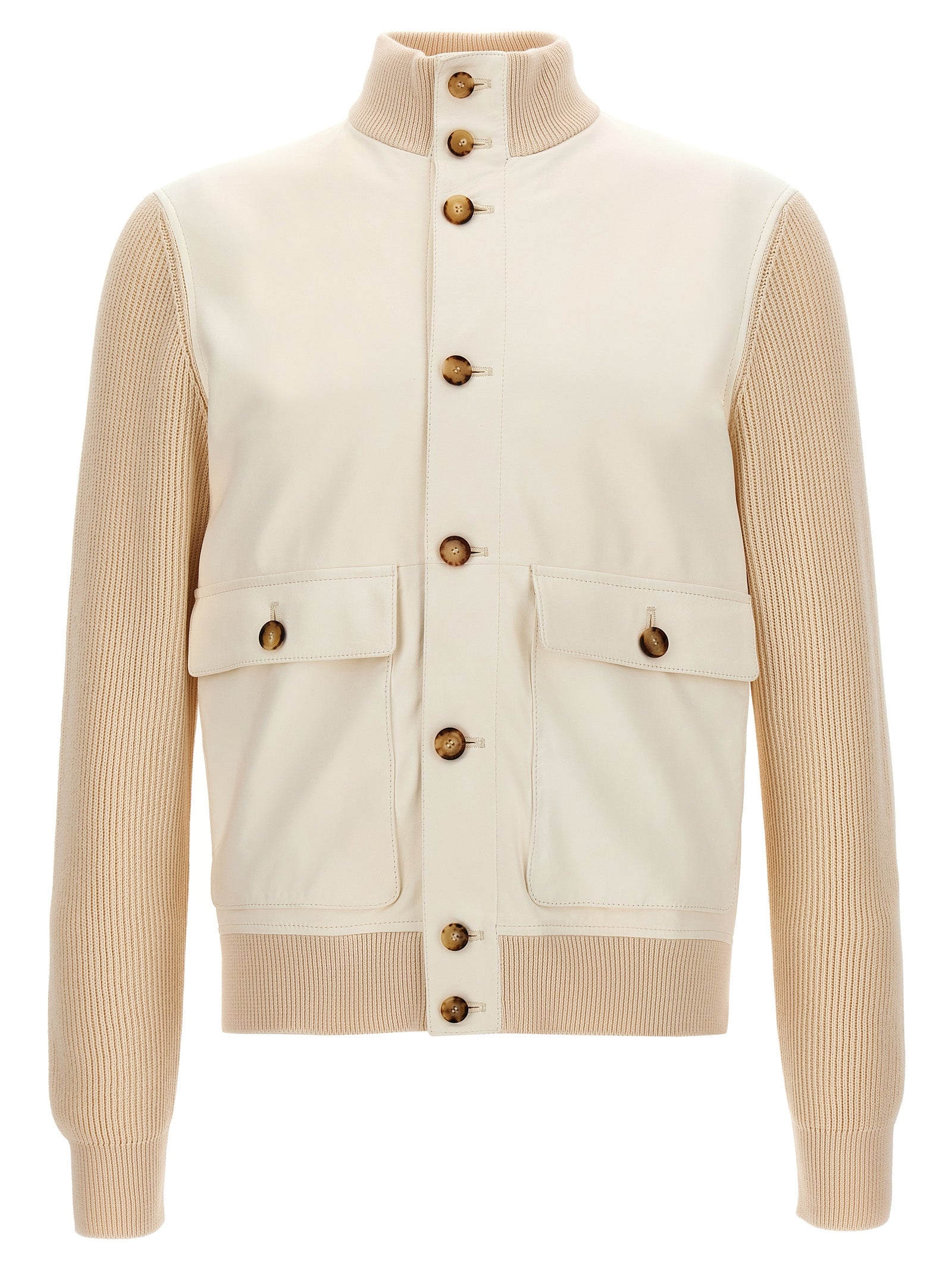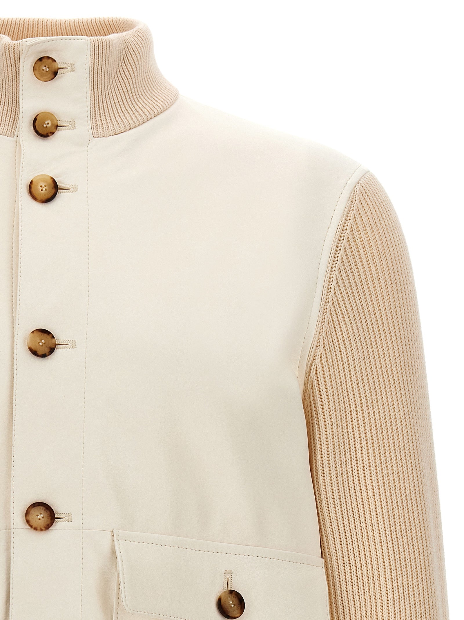 Giacca in pelle Brunello Cucinelli con inserti a maglia