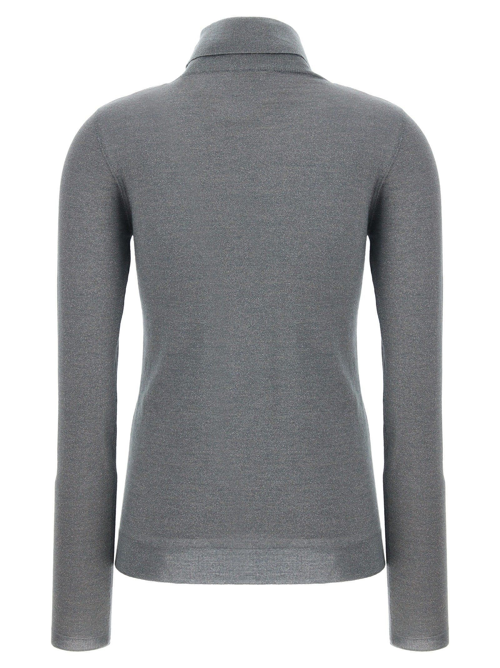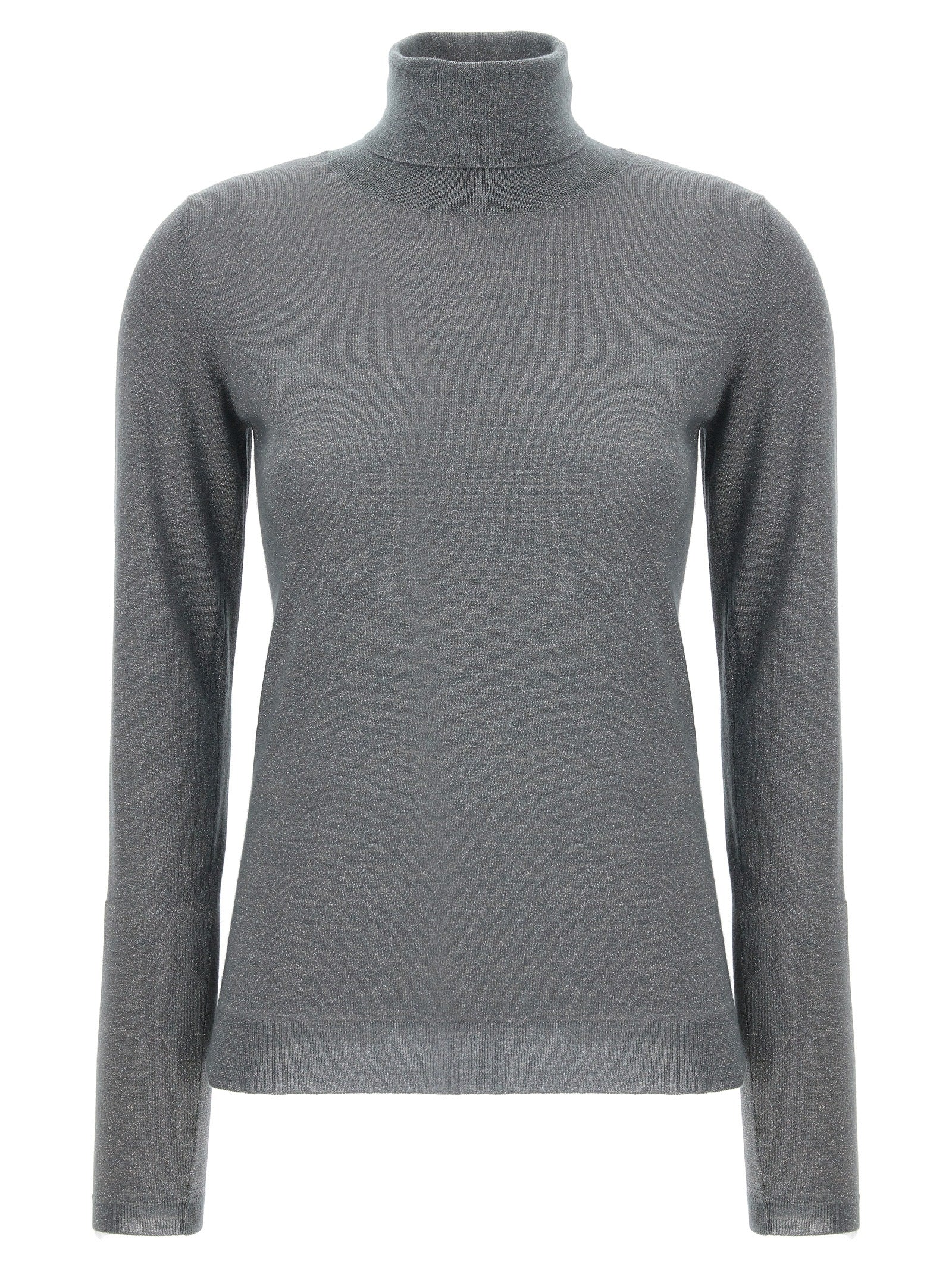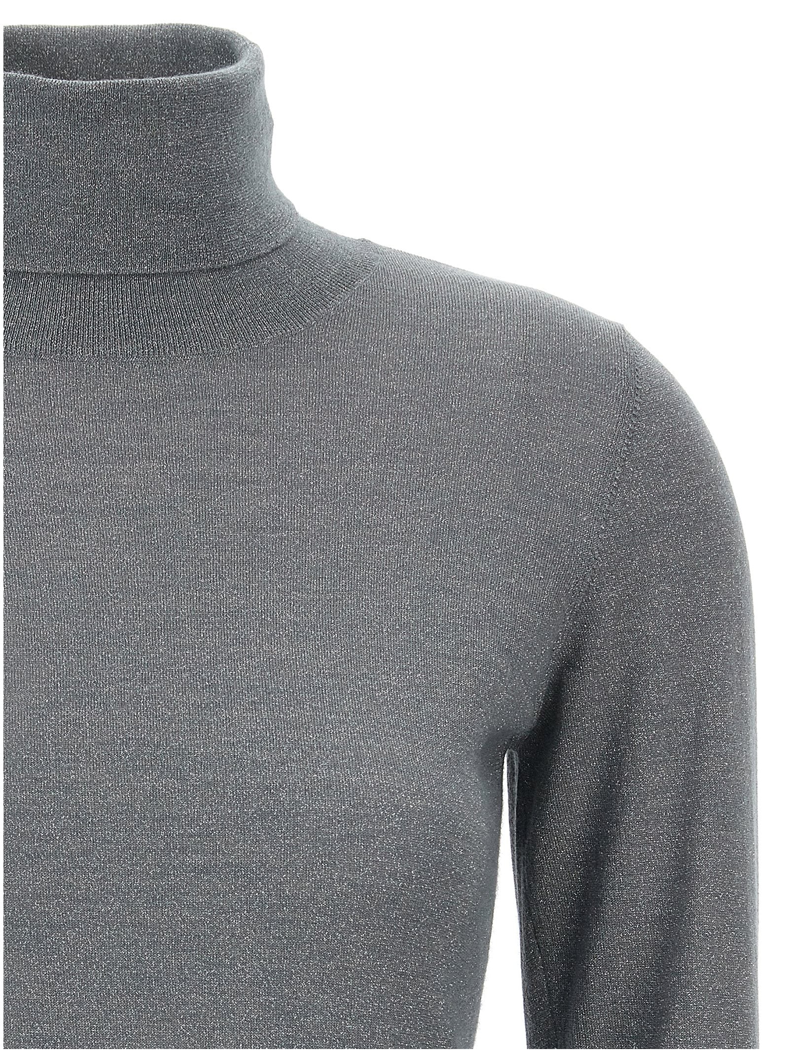 Maglione a dolcetteggiatura a maglia Lurex, collo alto, maniche lunghe.