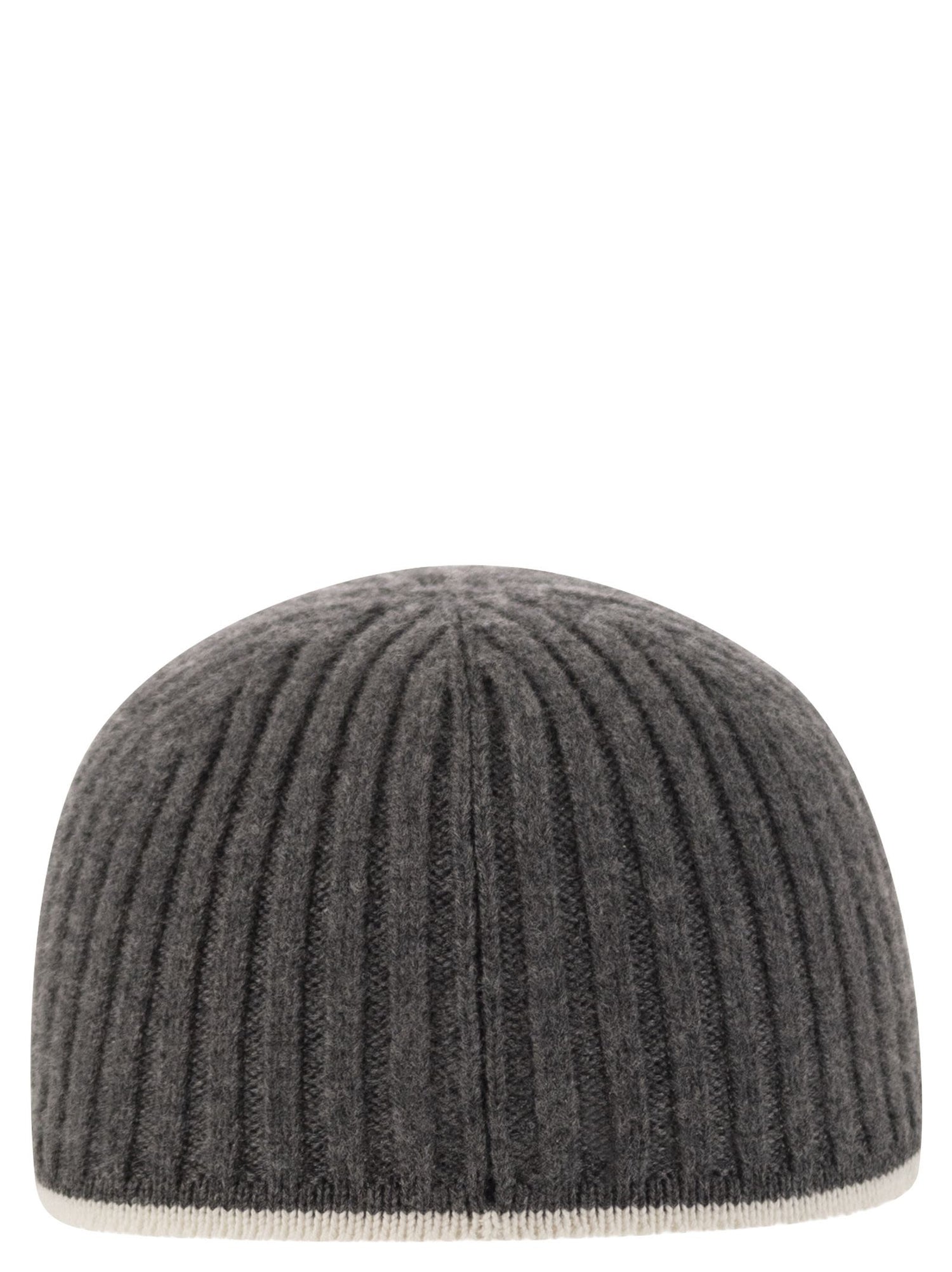 Brunello Cucinelli a costine di lana vergine, cashmere e tappo da baseball a maglia di seta con gioiello