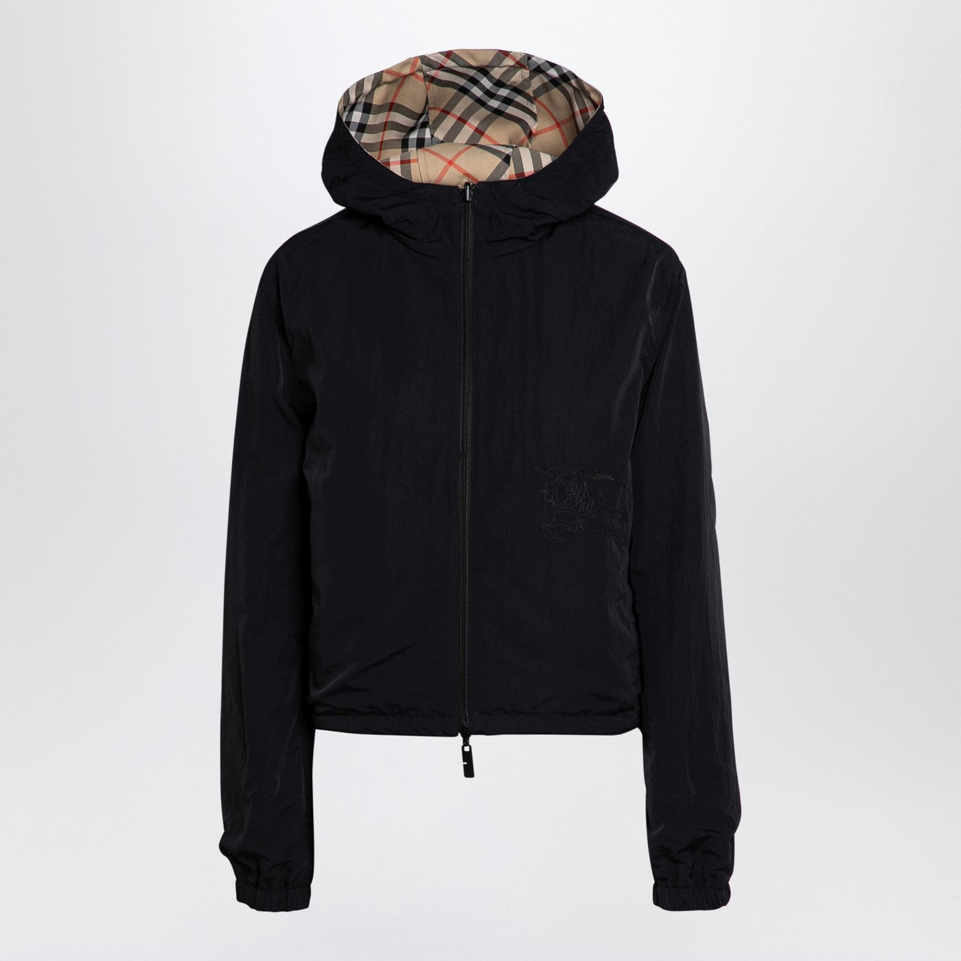 La giacca da controllo in nylon a sabbia leggera di Burberry presenta un design reversibile, un doppio fissaggio anteriore con zip, un orlo e un cofano, maniche lunghe con polsini elastici, un interno semplice e un logo tono su tono sul davanti.