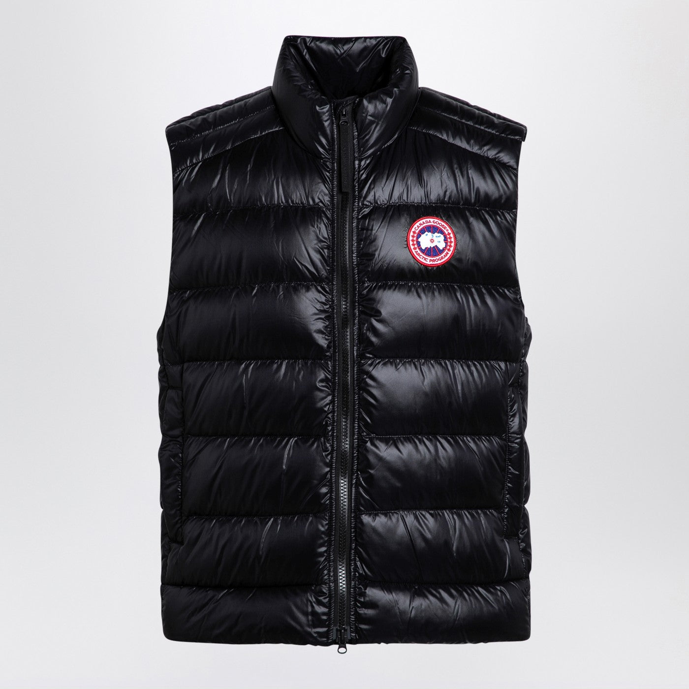 Wiistcoat Black Nylon Canada Goose con design trapuntato, patch di logo sul davanti e due tasche Welt.