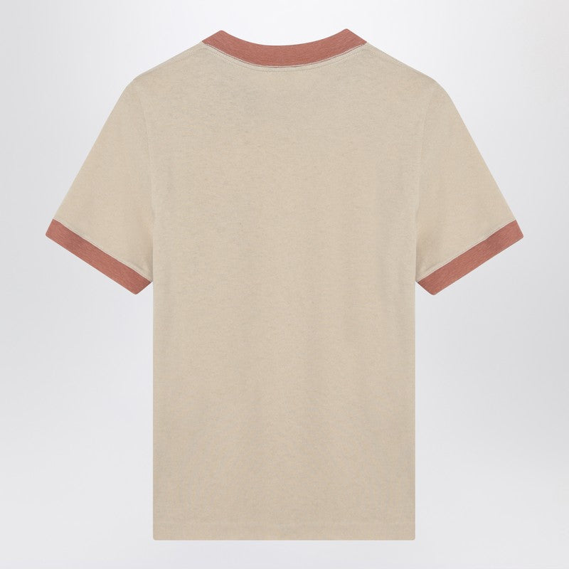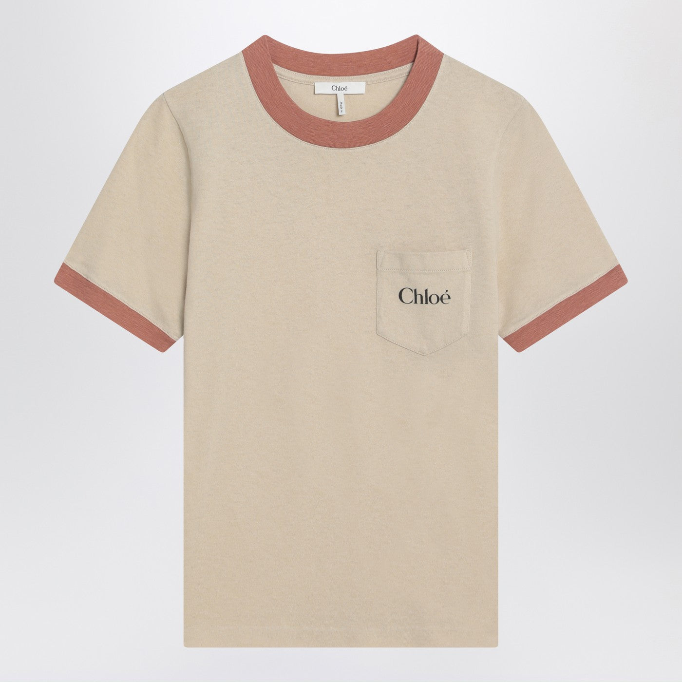 T-shirt di cotone chloé beige, con una tasca applicata con stampa con lettere logo, maniche corte e bordi a coste contrastanti.