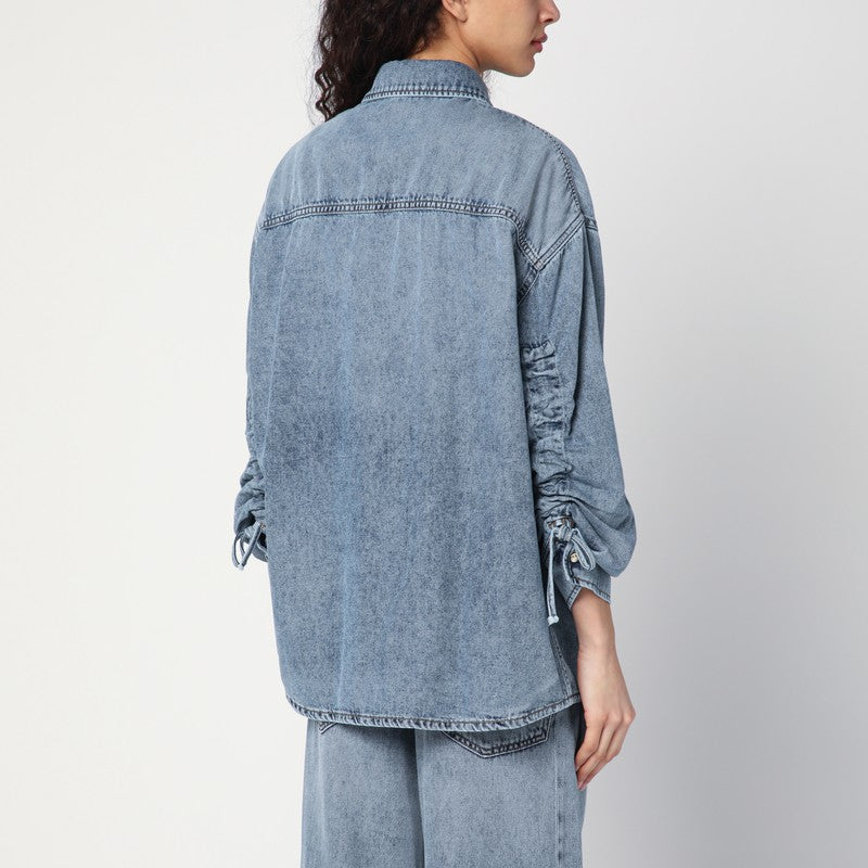 Camicia larga di Darkpark in blu di cotone in denim, con maniche lunghe con dettagli raccolti, abbottonatura frontale e un classico colletto.