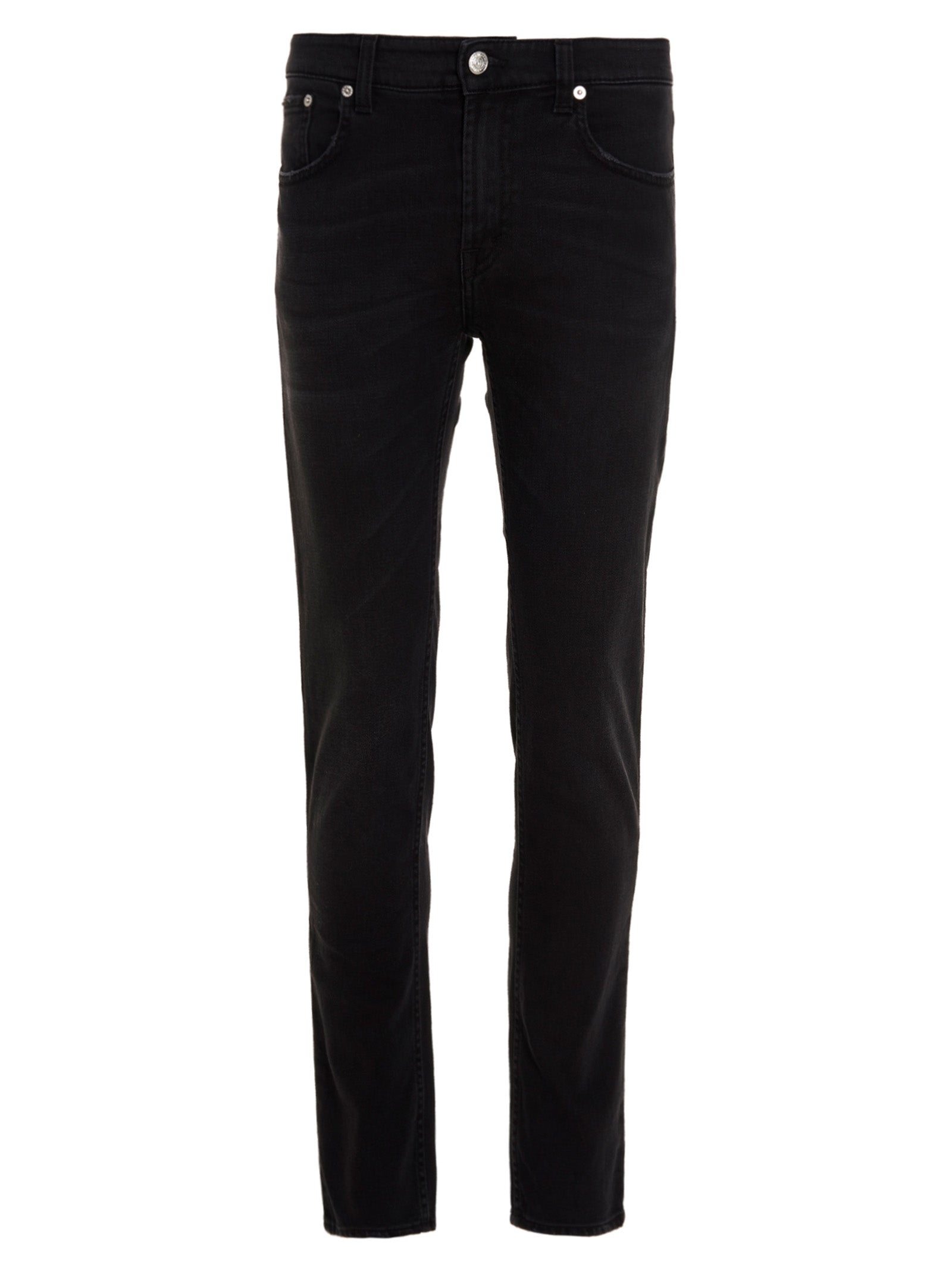 Jeans denim 'skeith', stile di lavaggio a 5 tasche, vita normale con chiusura a zip e pulsanti.