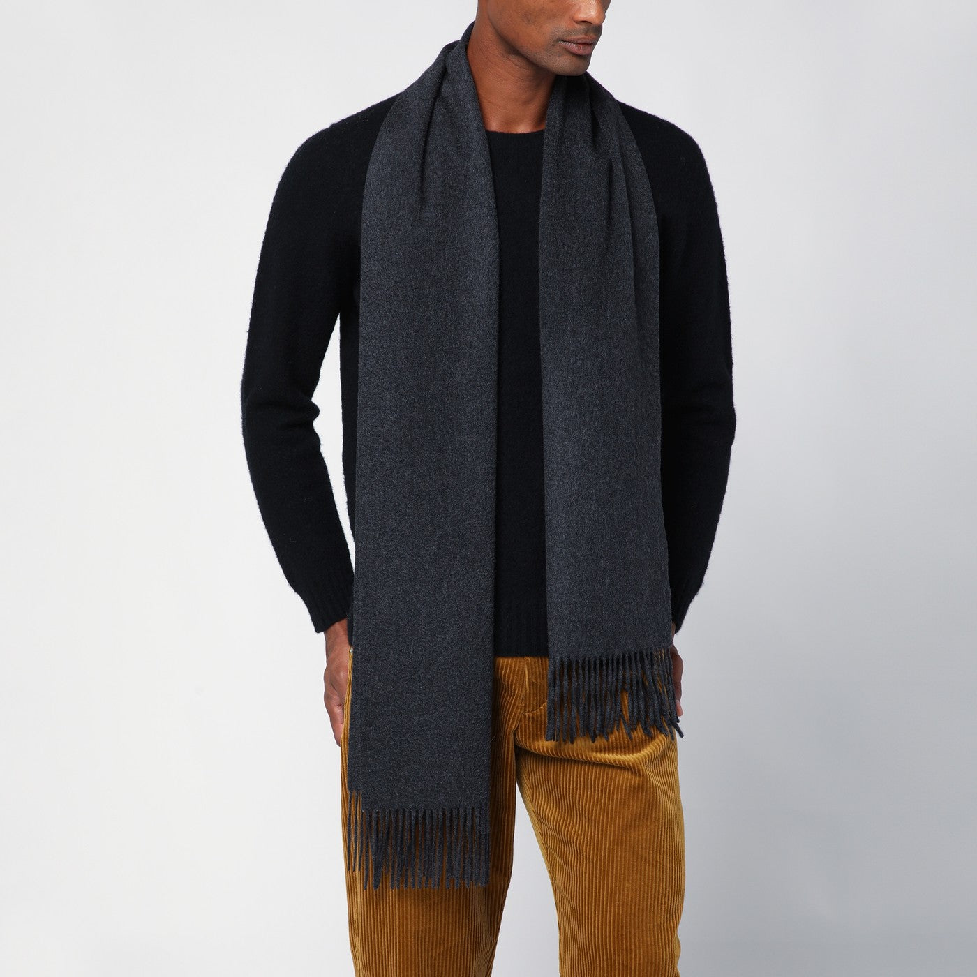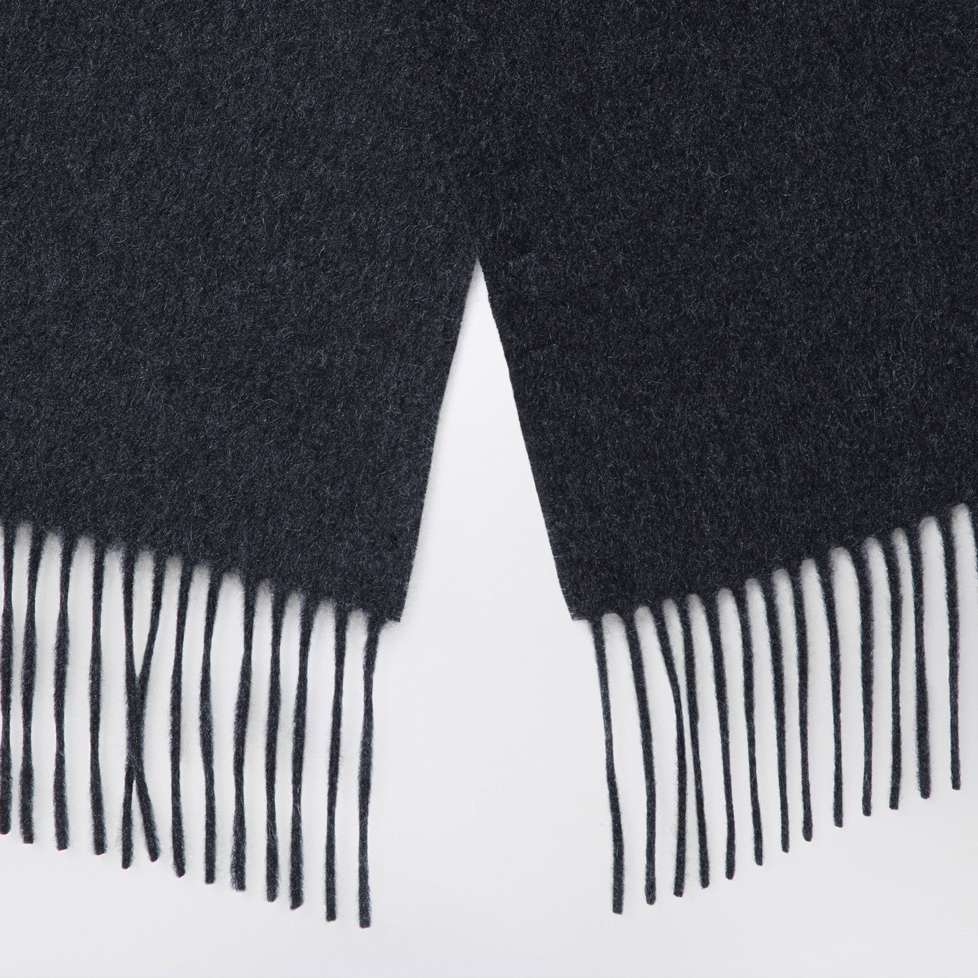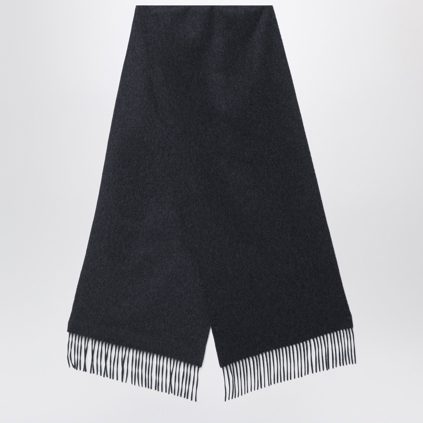 Sciarpa di lana vergine grigio scuro di Destin Surl con piccoli bordi con frange.