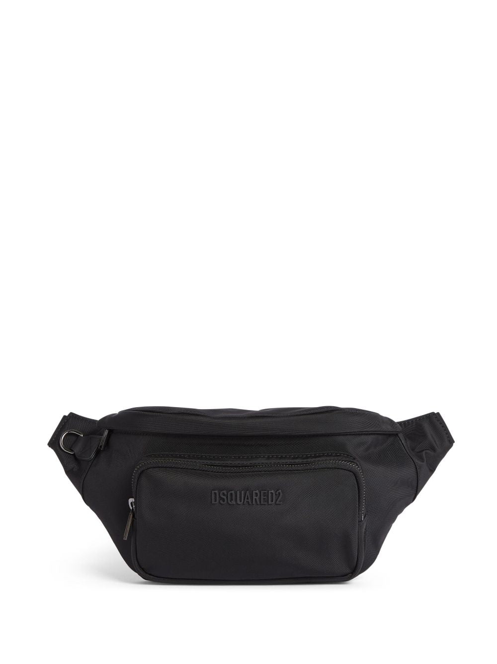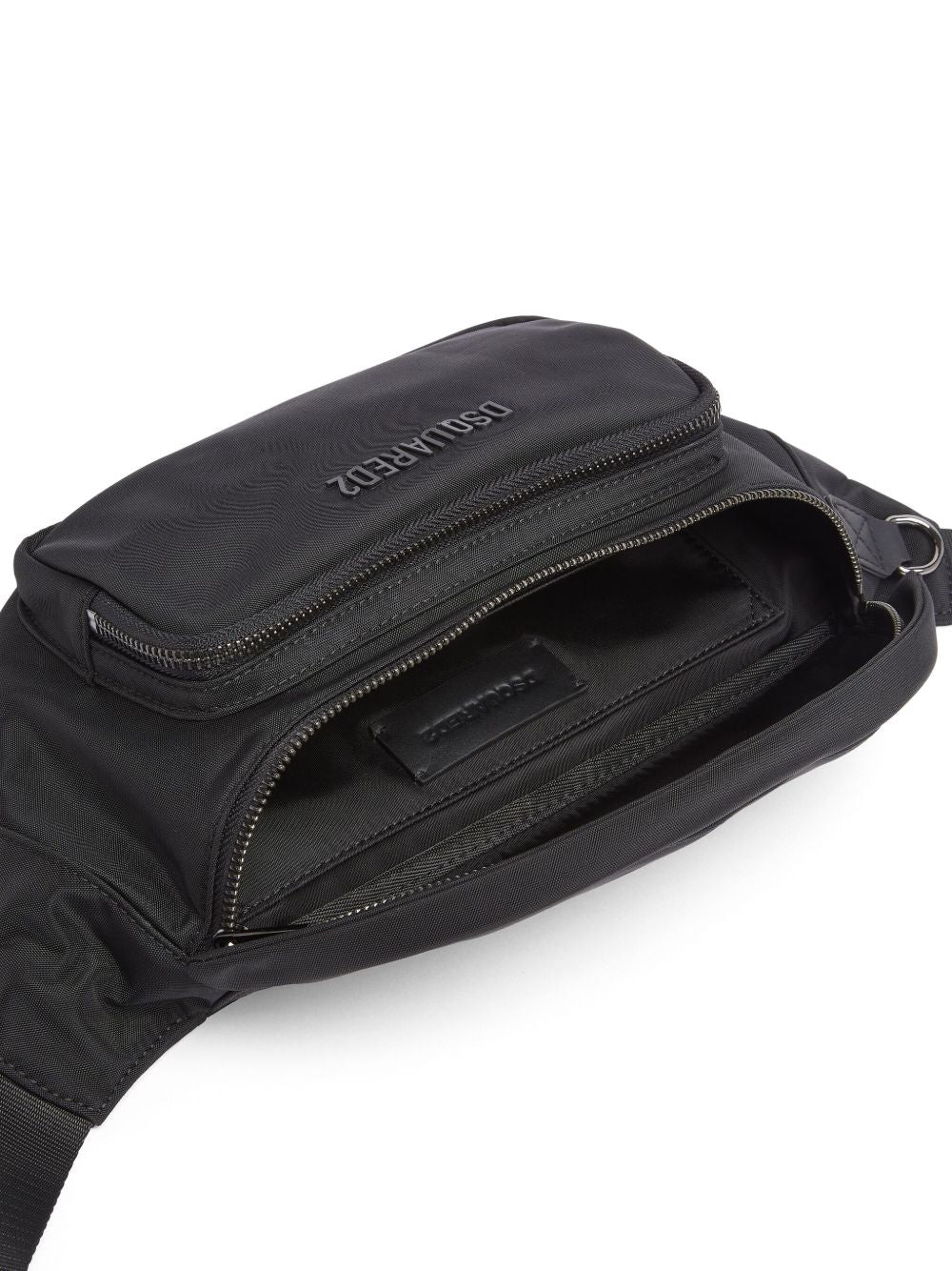 logo in tela nera in rilievo sul davanti dettagli tubolari finiture color argento cinturino in vita regolabile chiusura superiore con zip tasca anteriore a marsupio con zip tasca posteriore con zip scomparto principale tasca interna a bustina