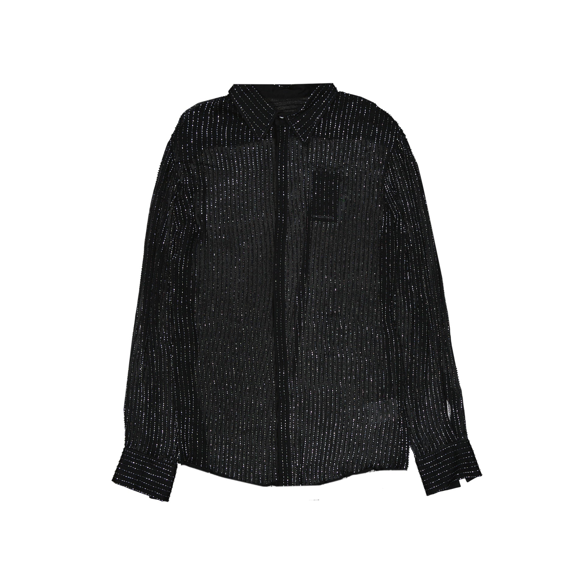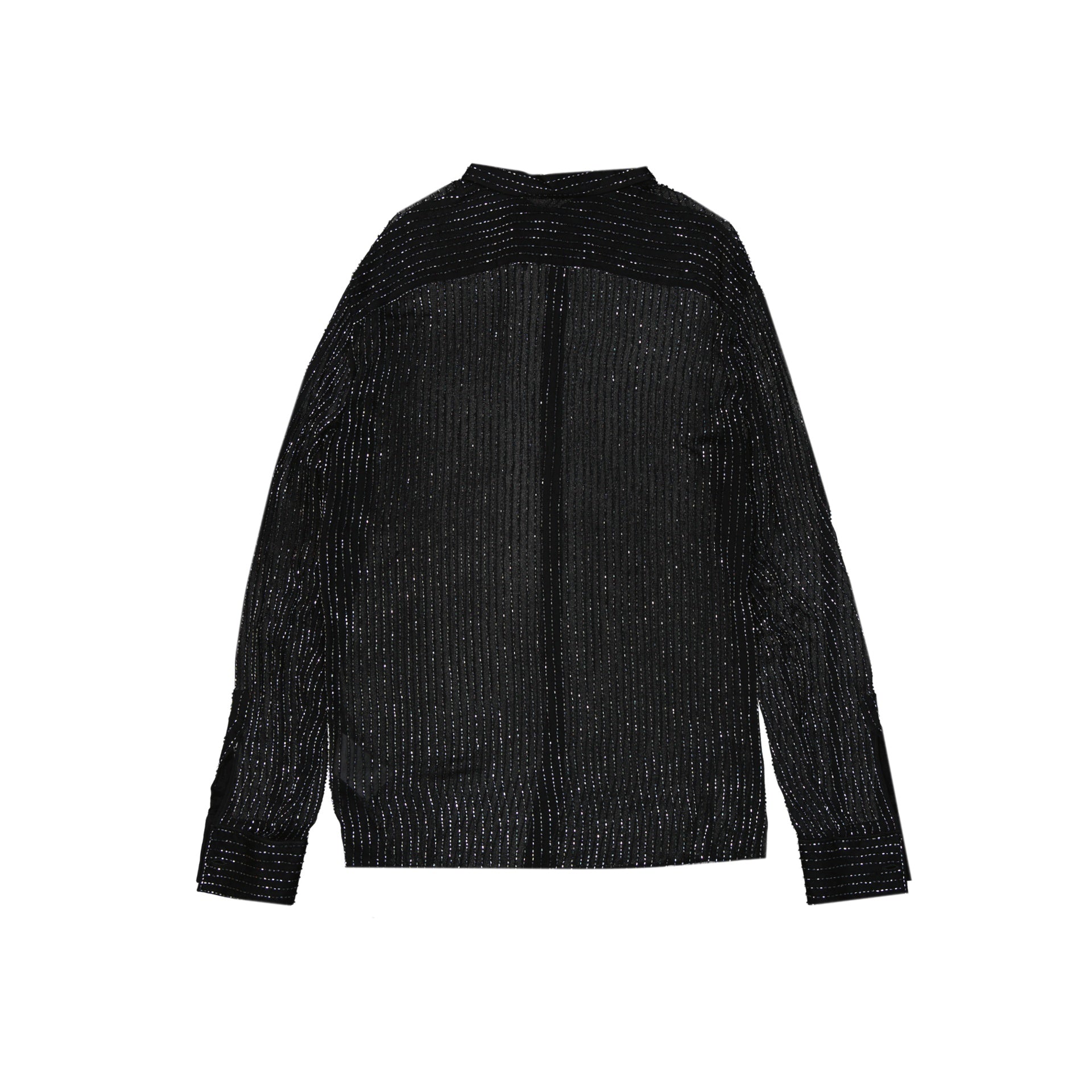 Composition100% silk long sleeves hand wash concealed front button fastening small imperfection embroidery: 100% glass no button cuffs allover glass crystal made in italy