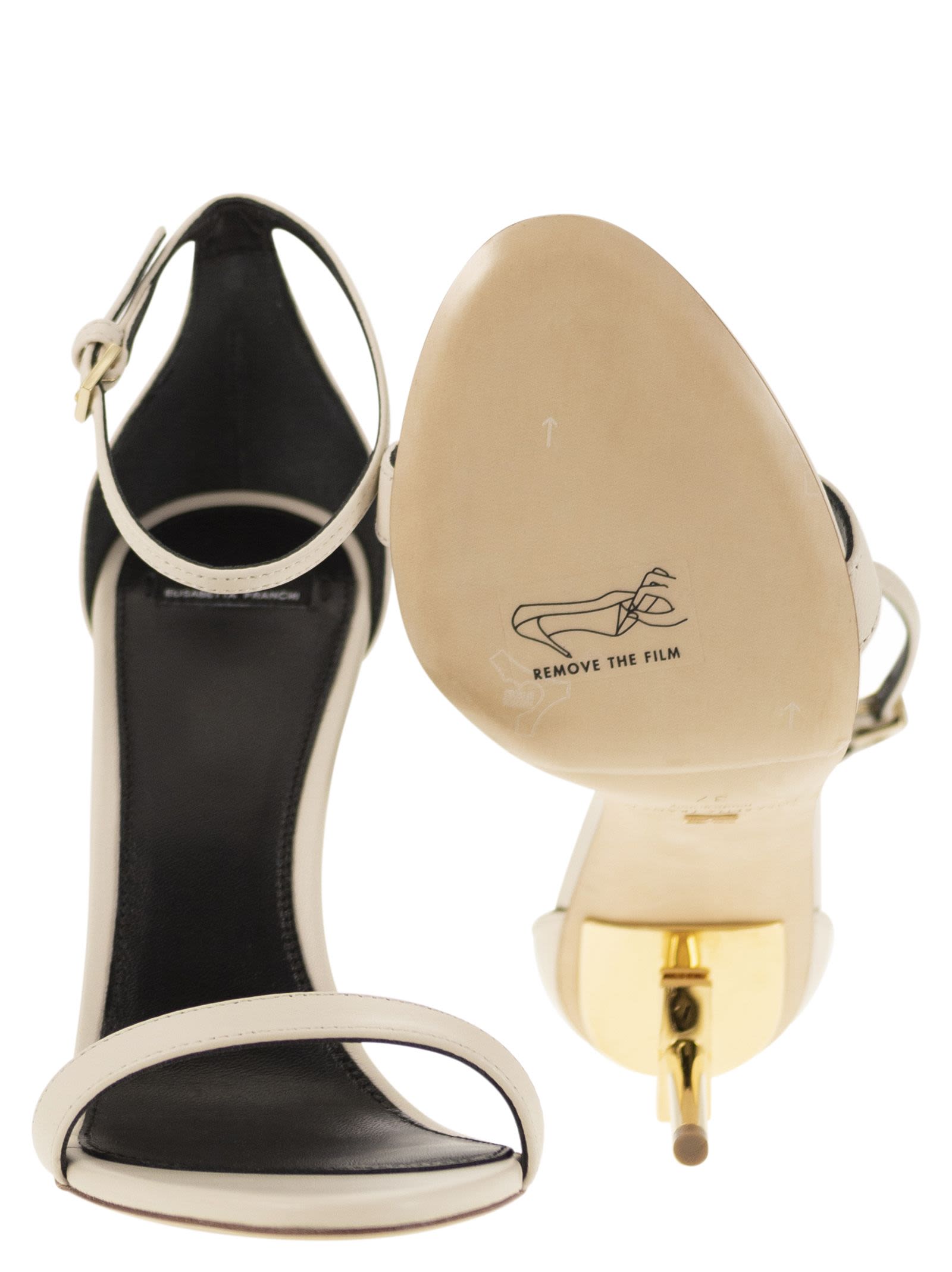 Sandali in pelle con cinturino alla caviglia con fibbia regolabile. Includono un tacco di metallo dorato con logo. - cinghia della caviglia - Tacco con logo - Katskin - Sole: ID designer in pelle: SA23B41E2 193