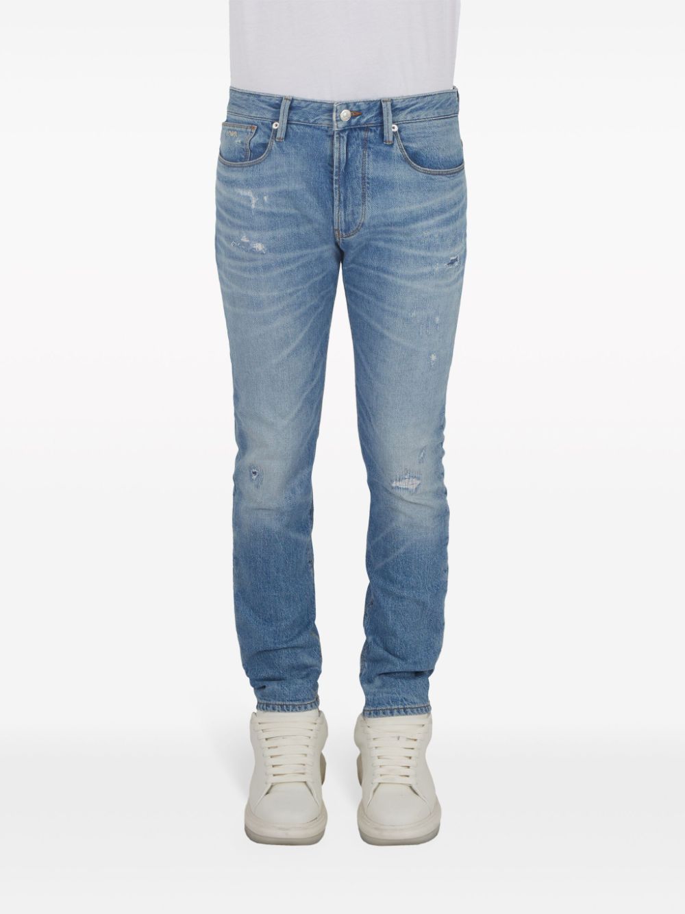 Lavatura leggera in denim in denim in denim a blu chiaro Effetto affogato Effetto Whiskering Patch Logo DETTAGLIO LOGO PROPRIO ALLE PERCHI PERCHIO PERCHIO PERCHI