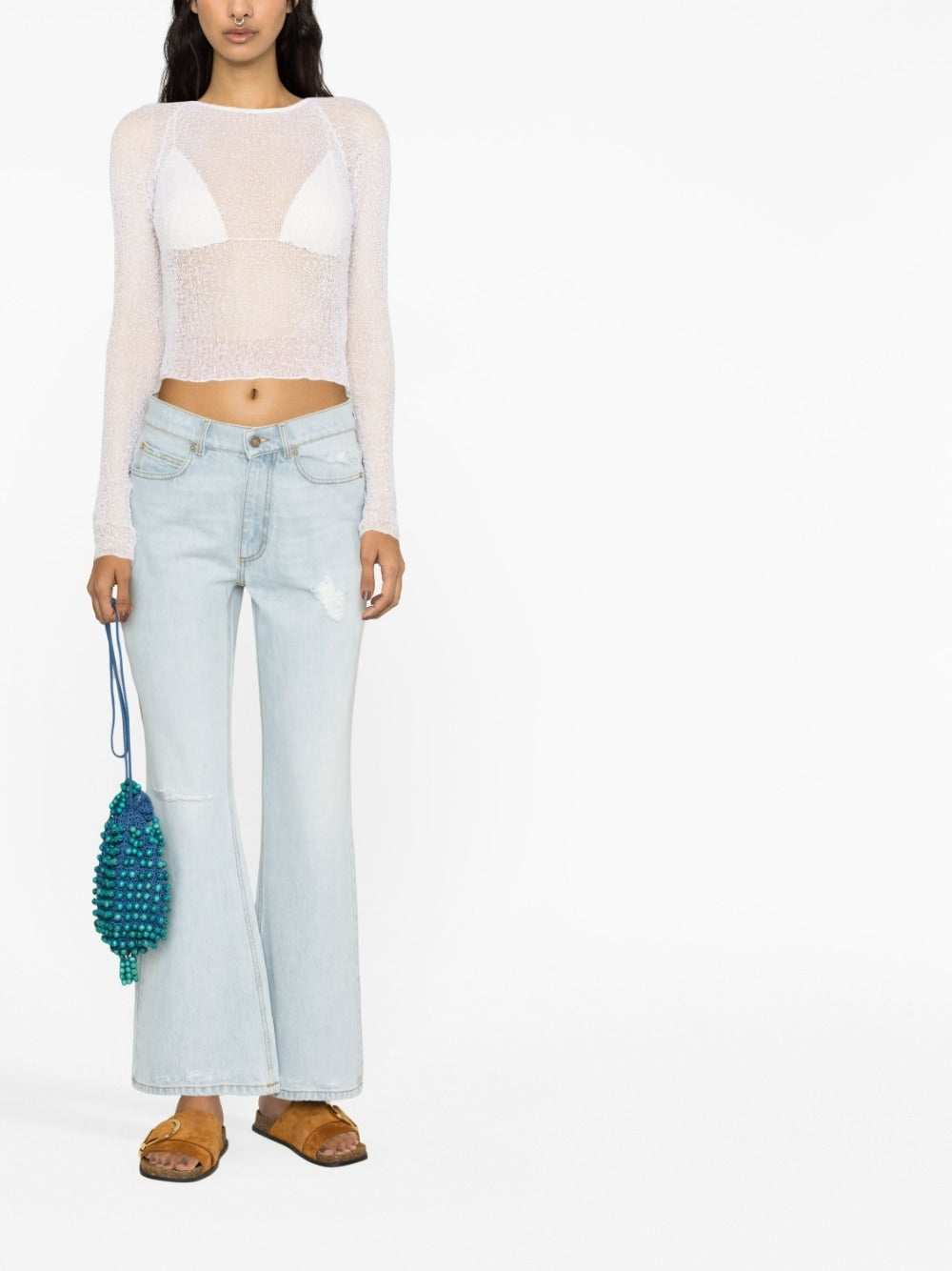 jeans in denim a gamba a gamba svasata di ERL con cinque tasche classiche, azzurro, cotone, vacili svasati, anelli e fissaggio anteriore e zip.