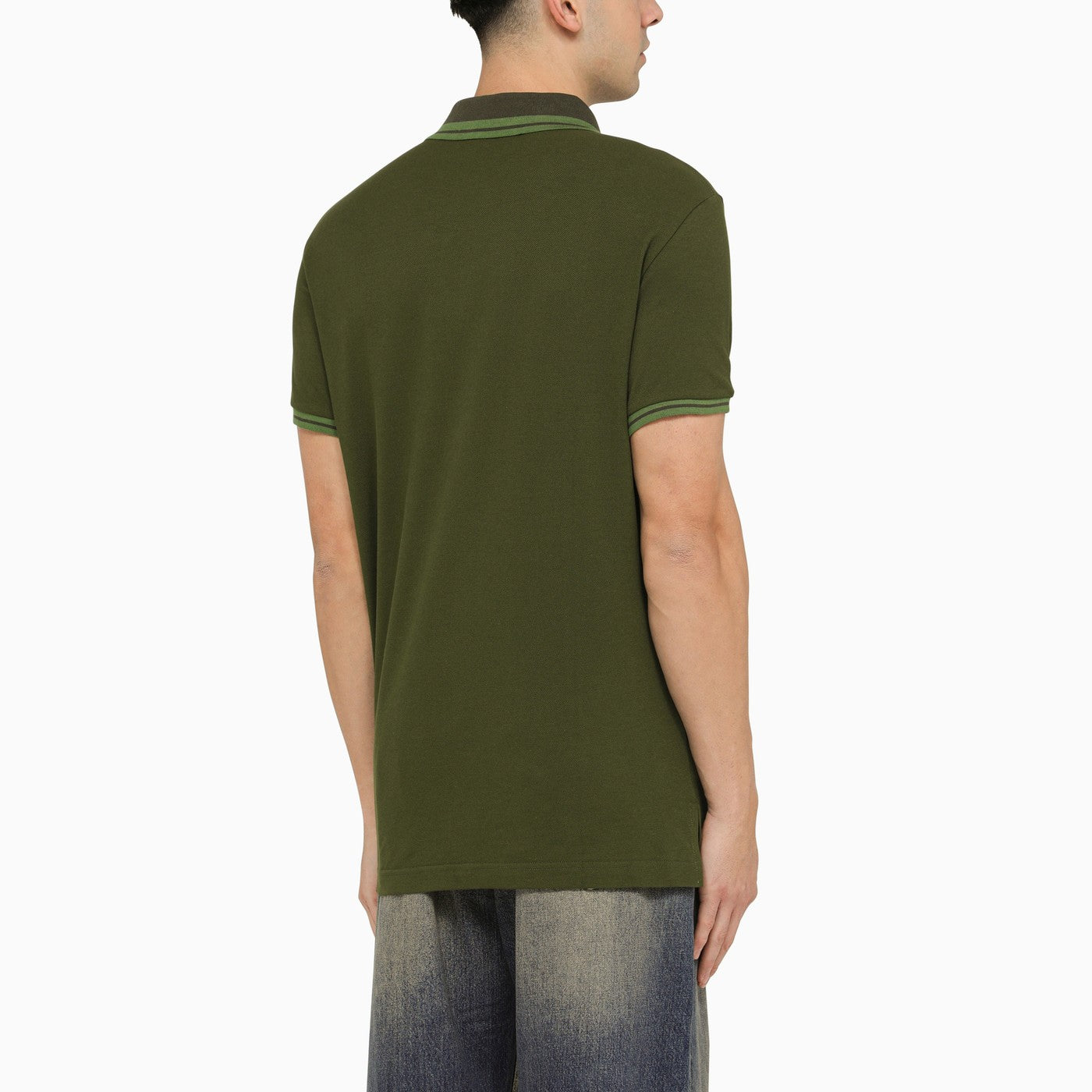 Polo a maniche corte etro verde con ricamo a logo