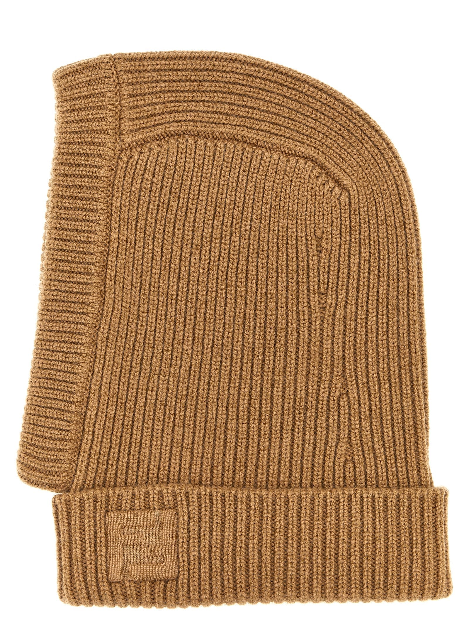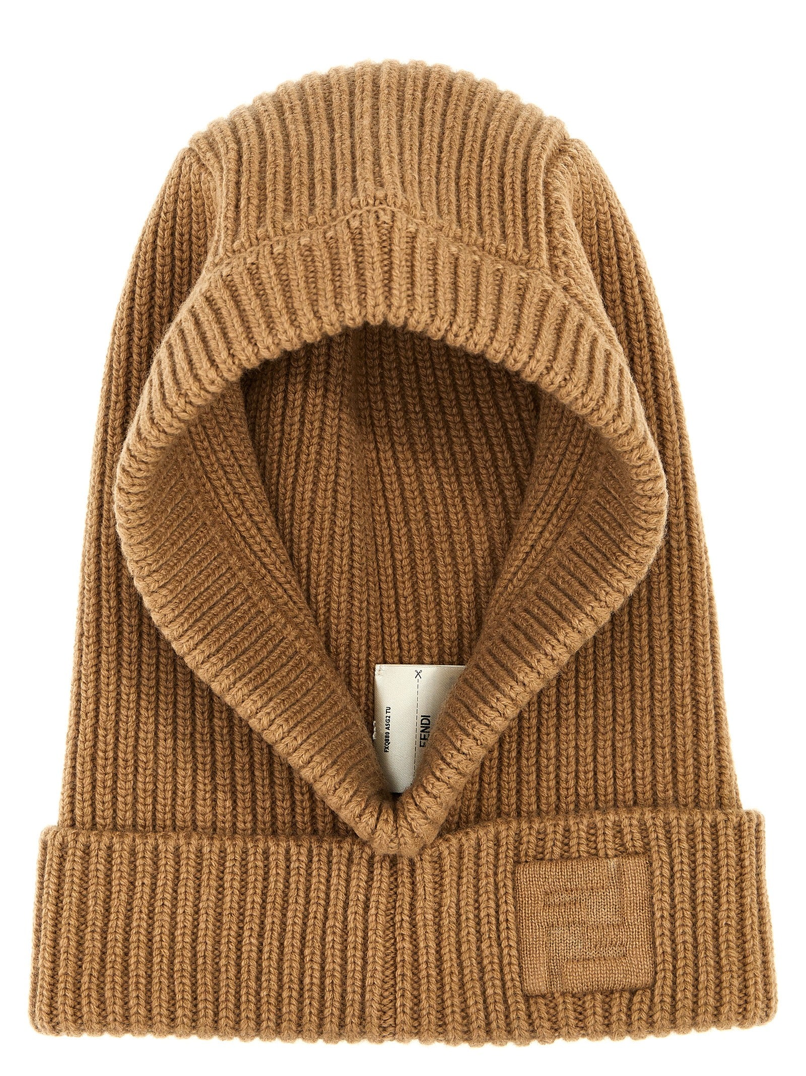 English rib wool and cashmere balaclava with embossed 'FF' logo on the neck.