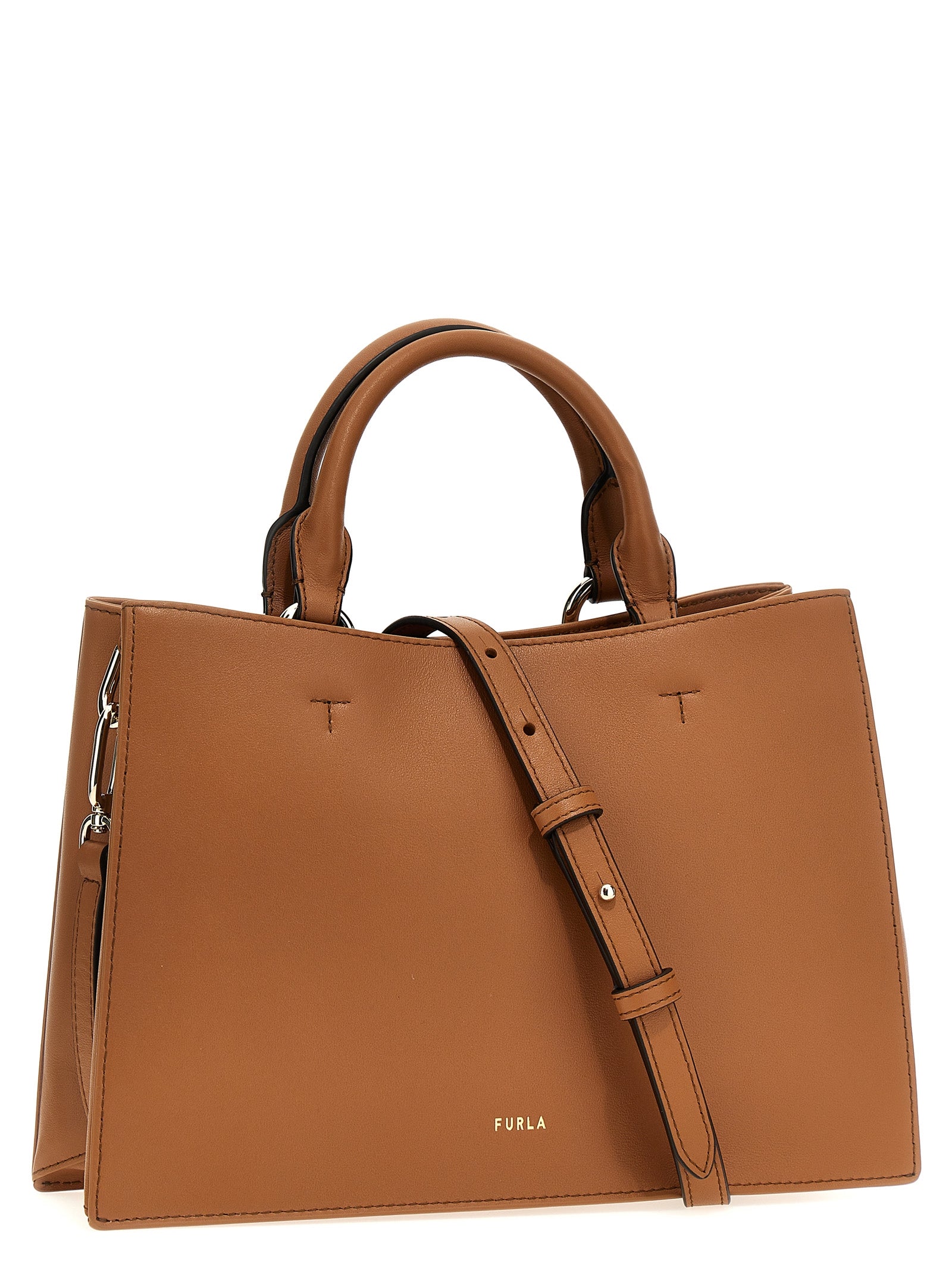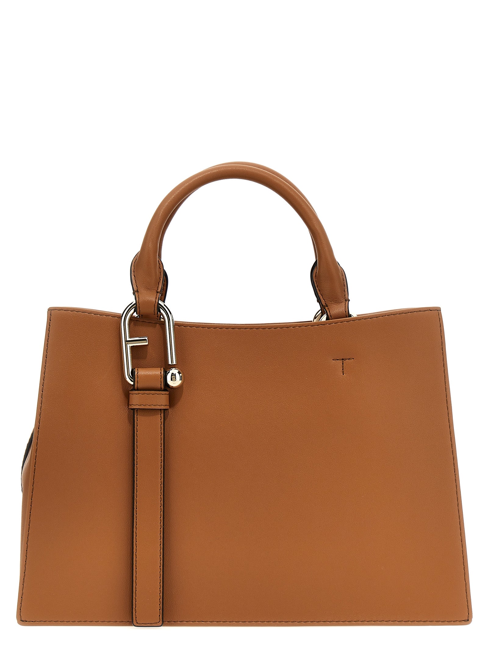 'Nuvola M'Borsa in pelle, doppia maniglia, chiusura magnetica, spalla regolabile e rimovibile.