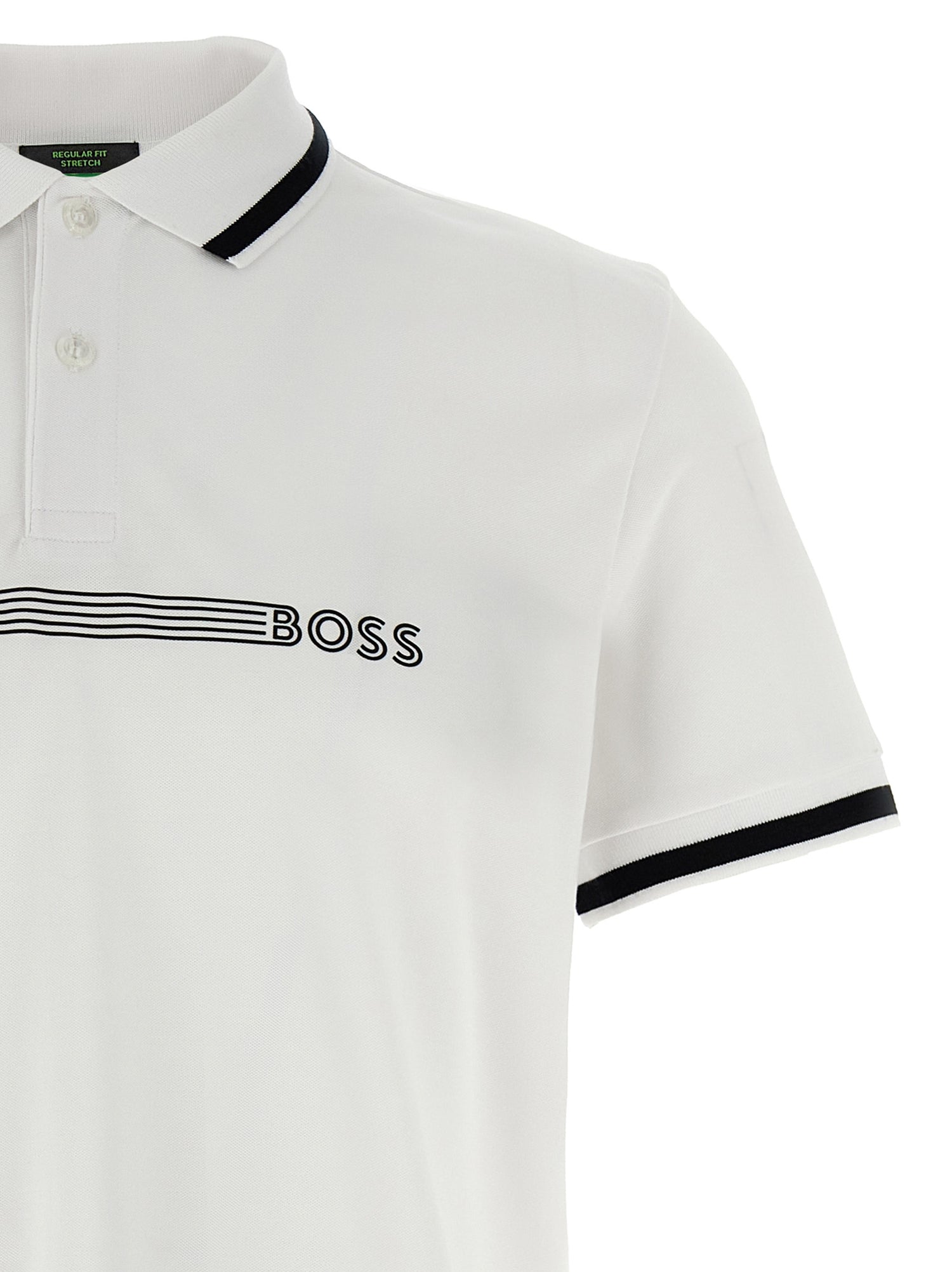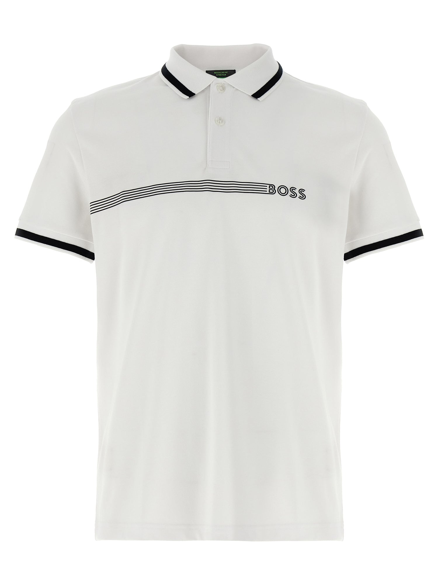 Shirt polo 'Paddy 1' in miscela di cotone allungata Piqué con stampa a logo anteriore, collare a bottone, maniche corte.
