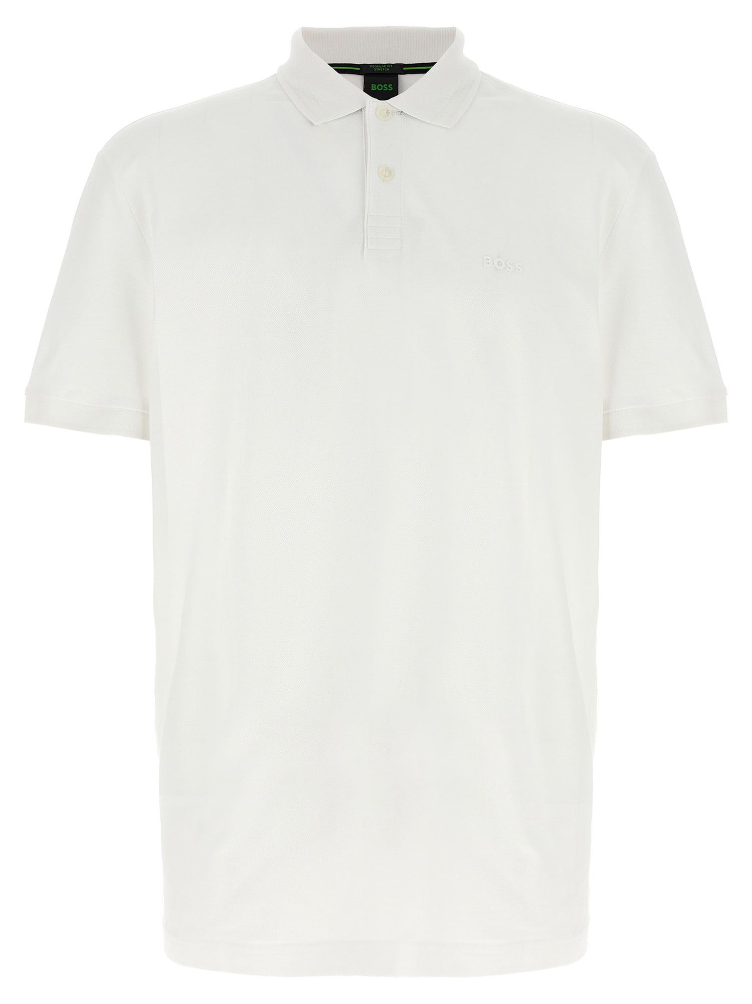 Shirt polo 'Pio 1' in piqué di cotone allungato con logo, colletto e bottoni in rilievo anteriore, maniche corte.