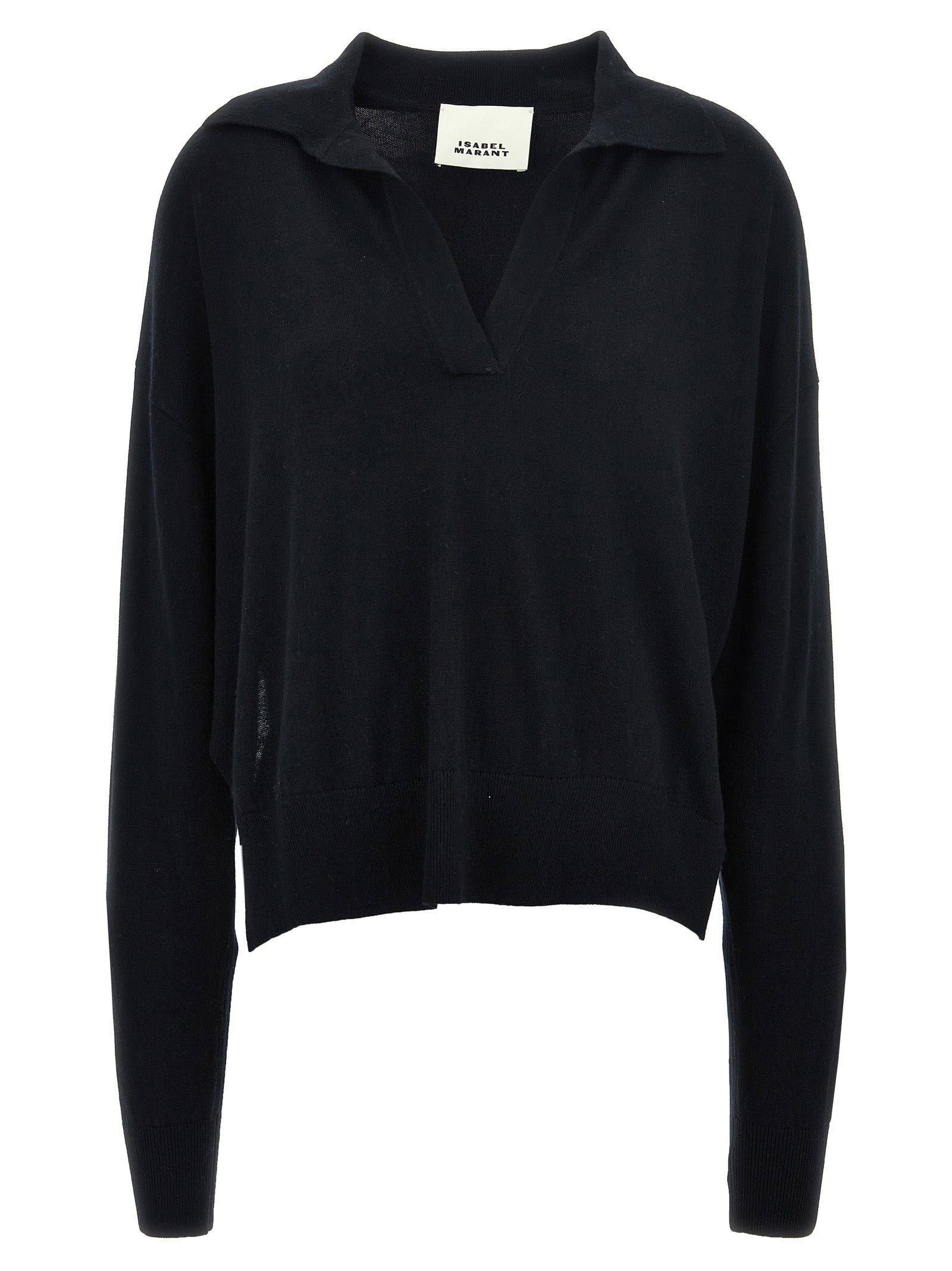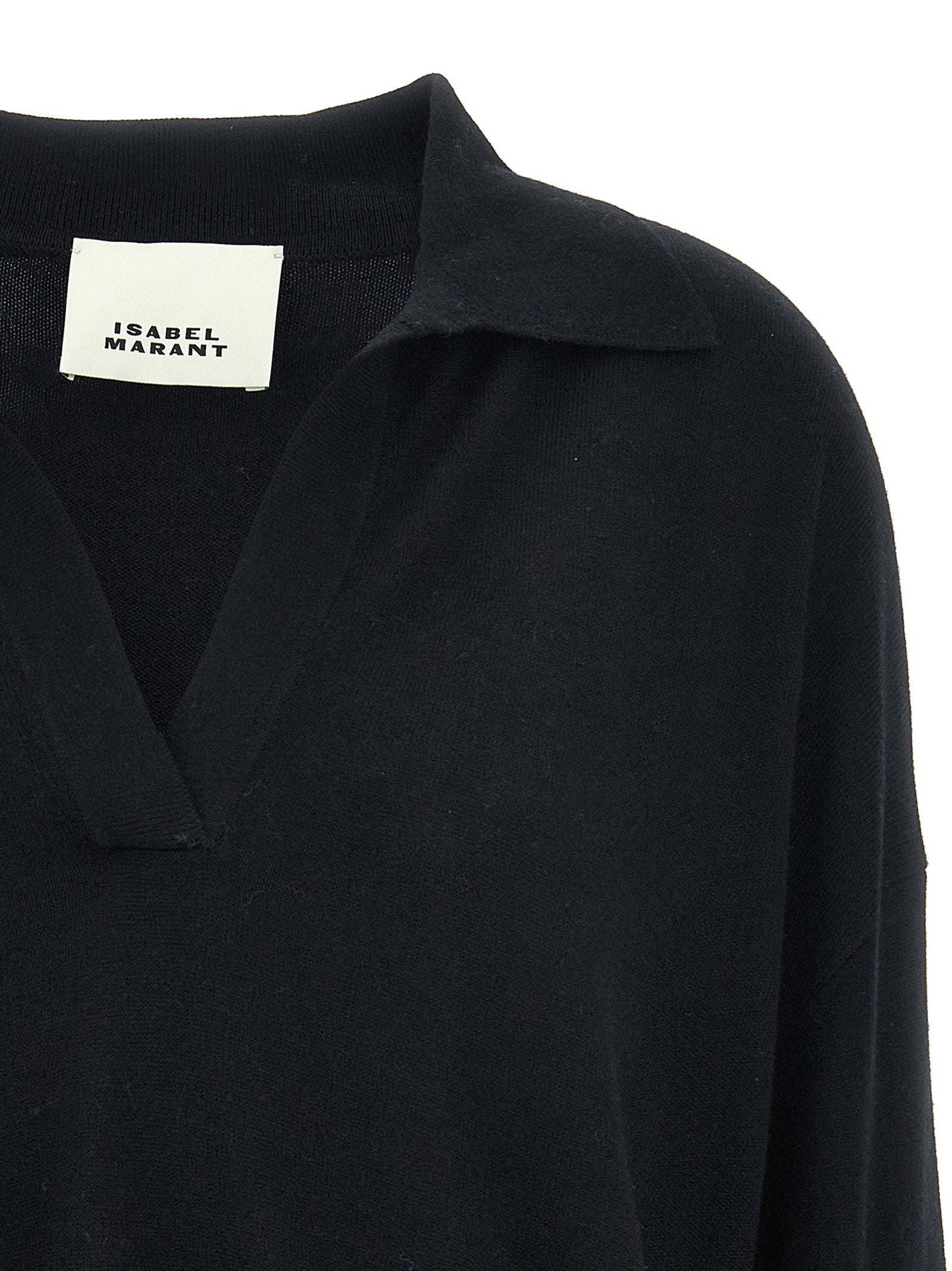 Maglione di viscosa e lana "Galix" con scollo a V e collare, maniche lunghe, fessure laterali.