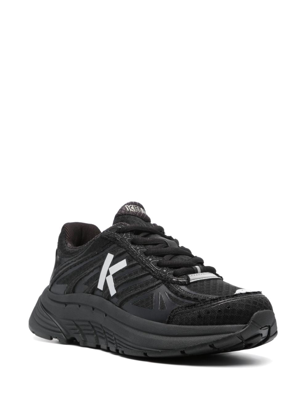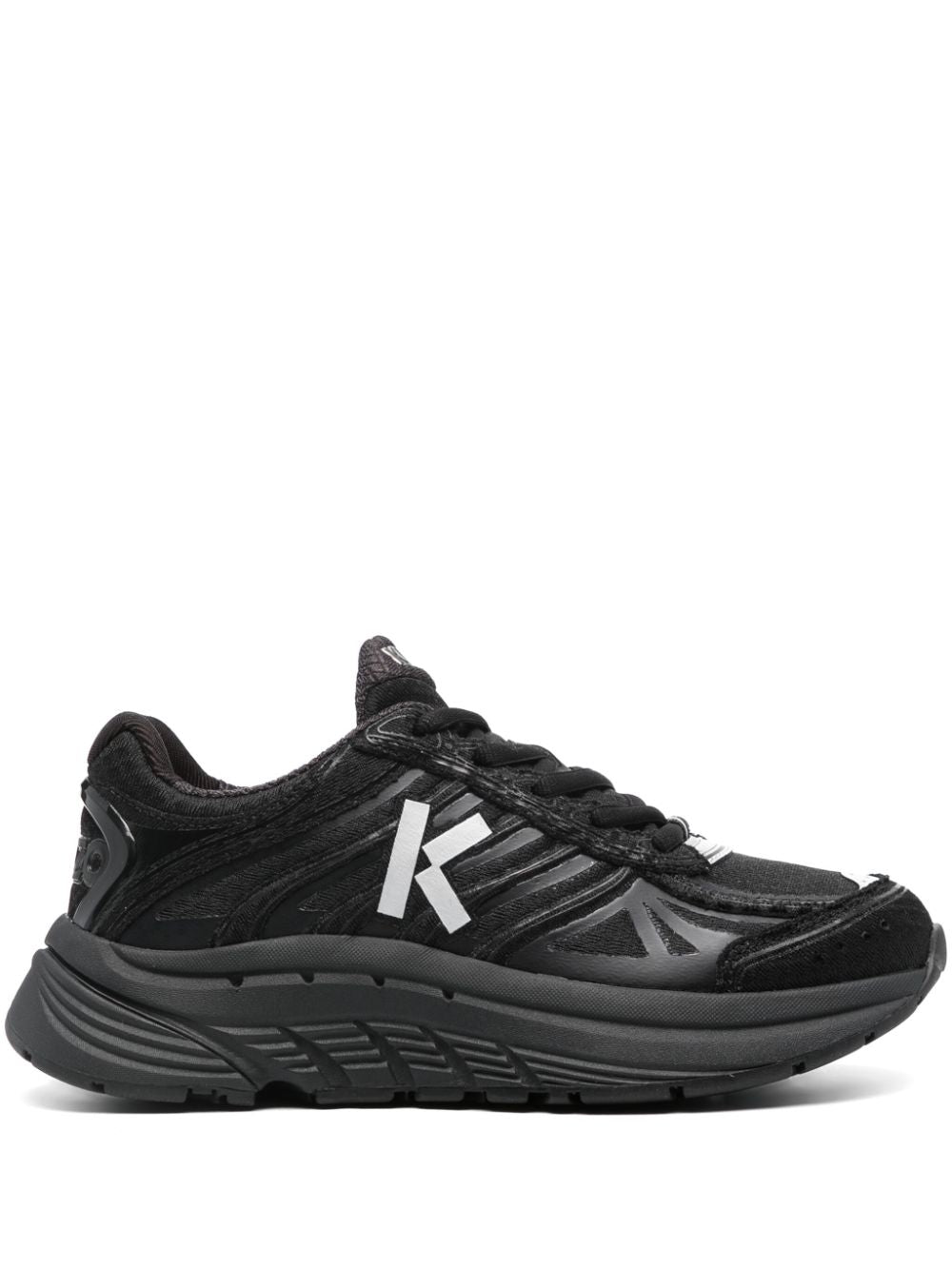 Sneakers a pizzo di ritmo di Kenzo con pannelli neri, mesh, stampa di logo sul lato, patch logo sulla lingua, punta rotonda, fissaggio a pizzo anteriore, soletta con marchio e suola in gomma increspata.
