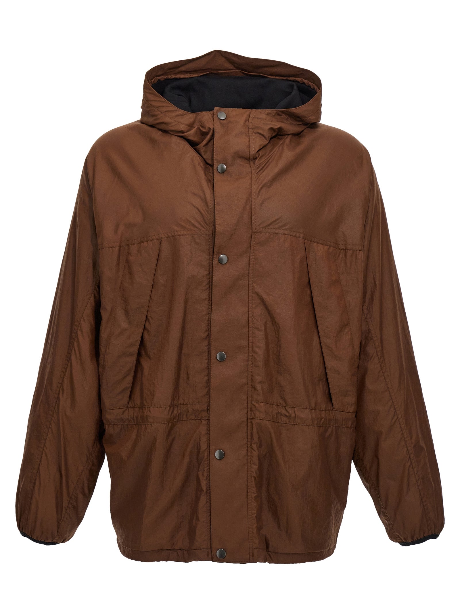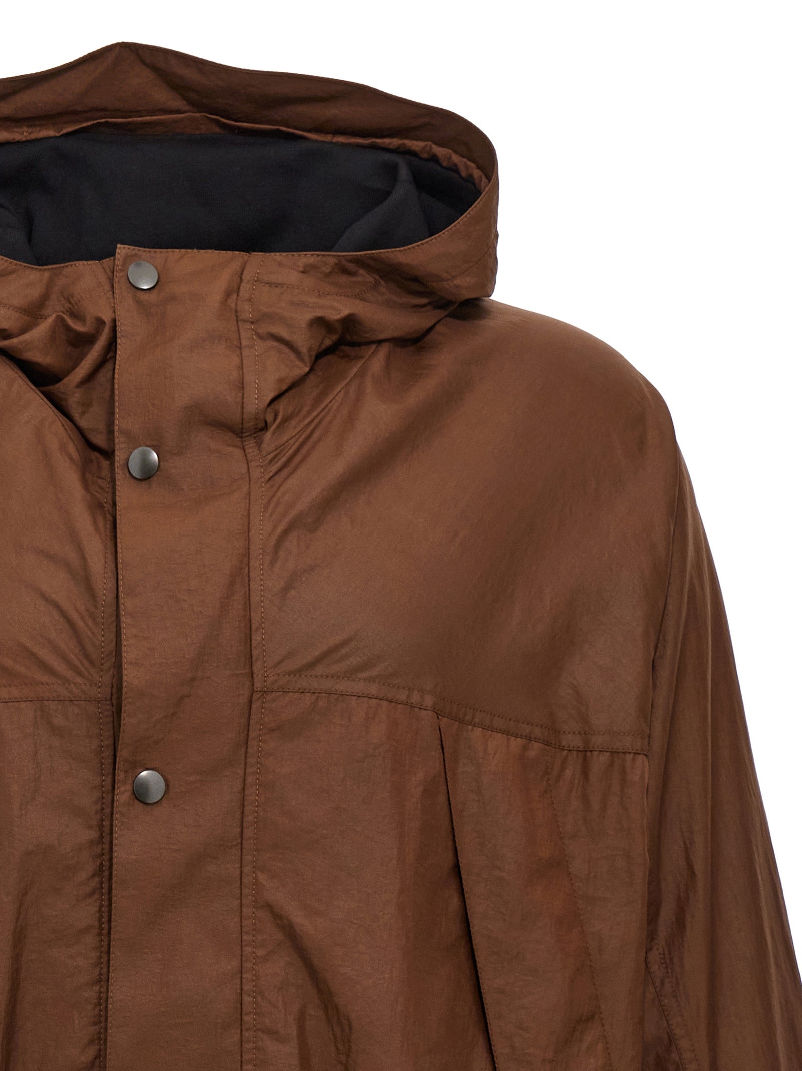 Giacca in nylon "Soft Technical Blouson" con interni foderati in maglia, cappuccio, chiusura a zip e bottoni, tasche, maniche lunghe.