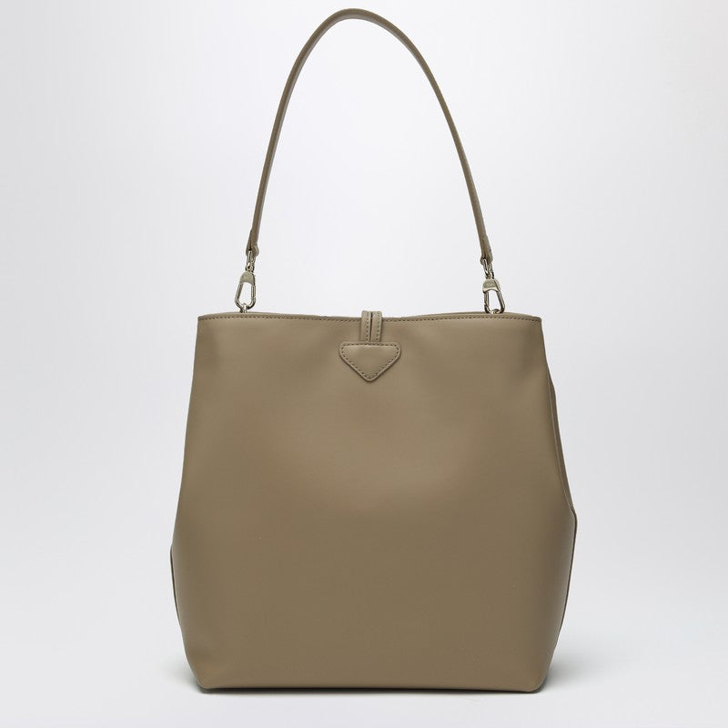 Medium-sized Longchamp bag in root-coloured calfskin leather, featuring a detachable top handle, bamboo fastening and gold-coloured metal hardware.