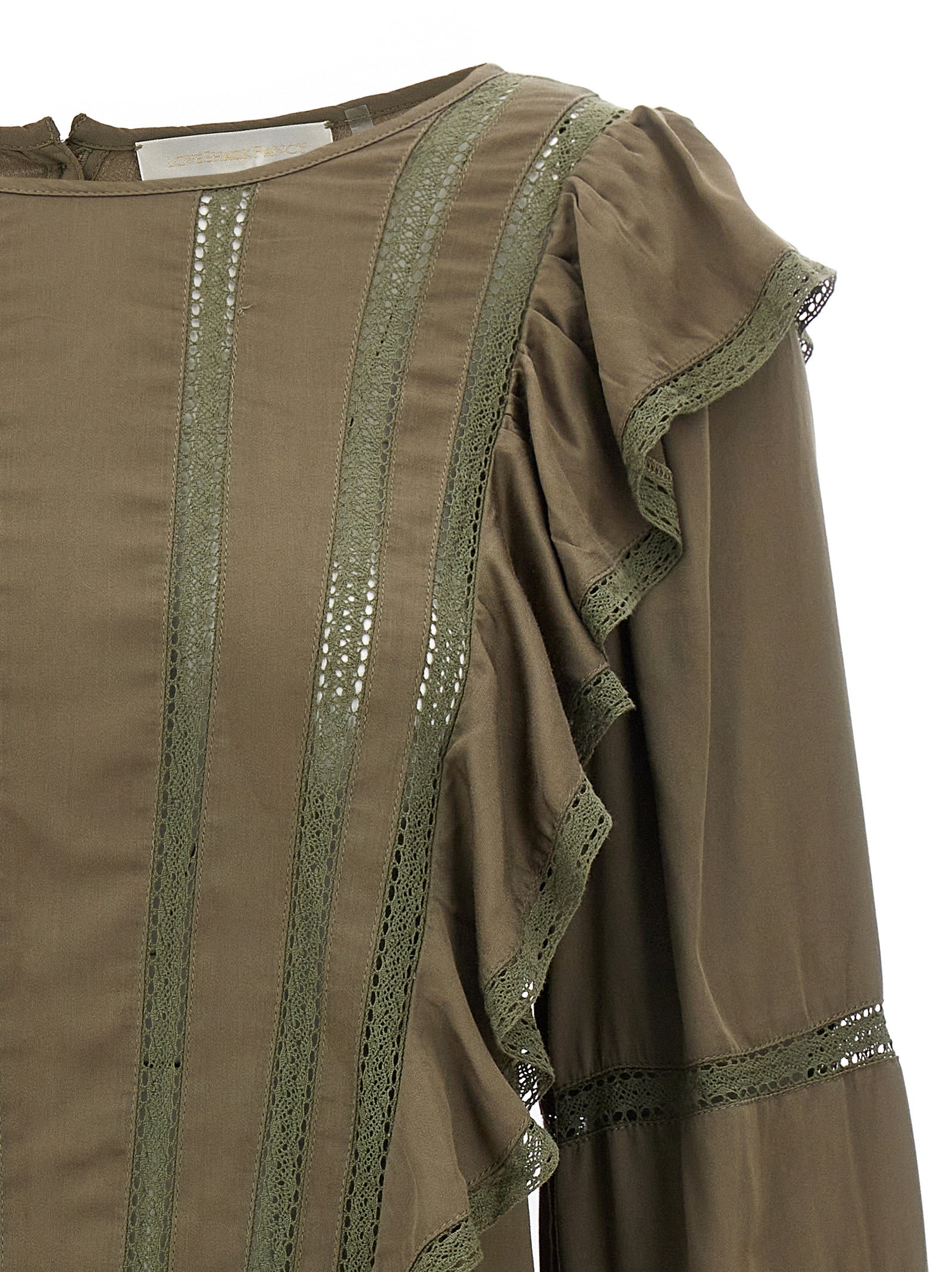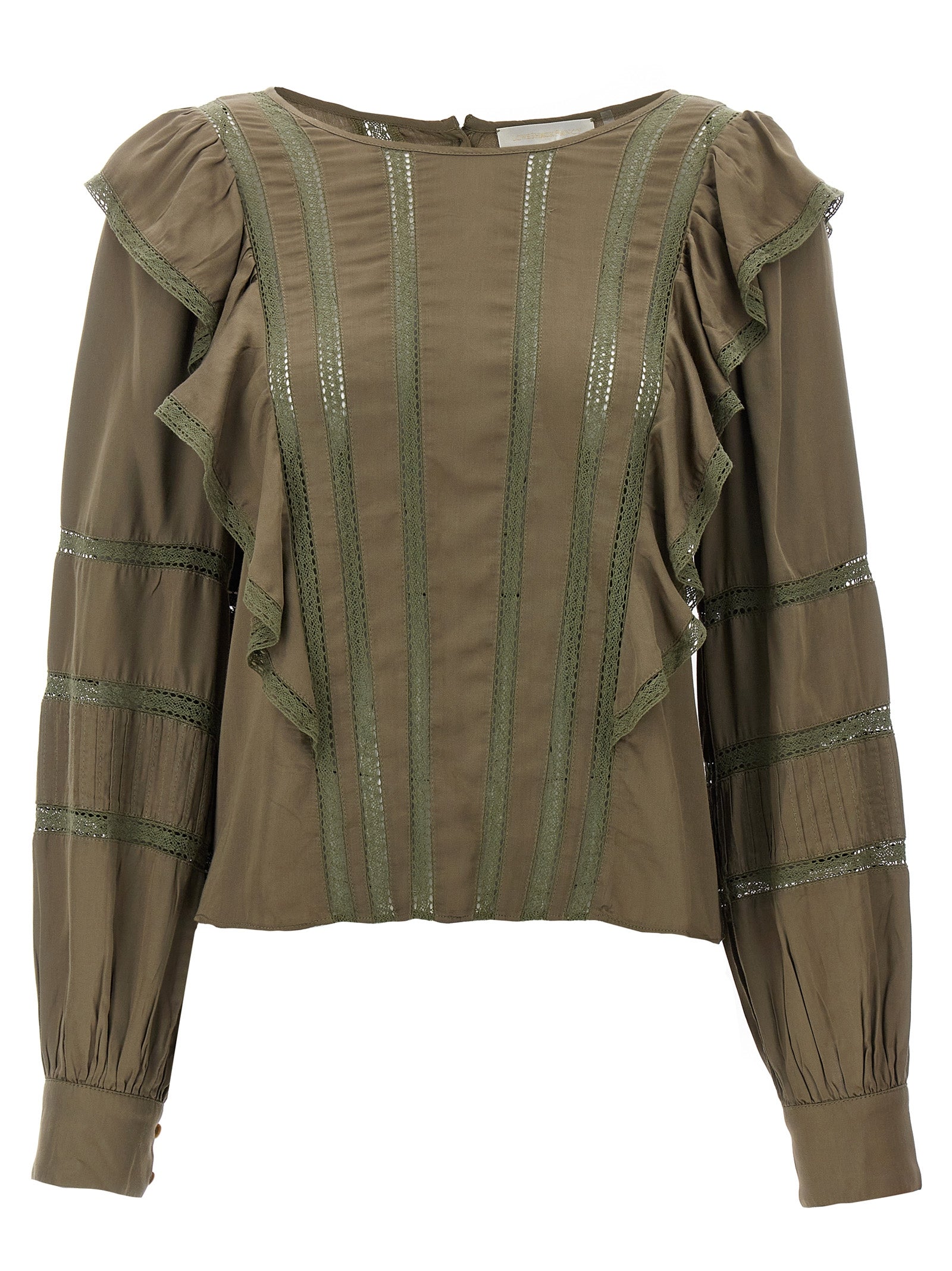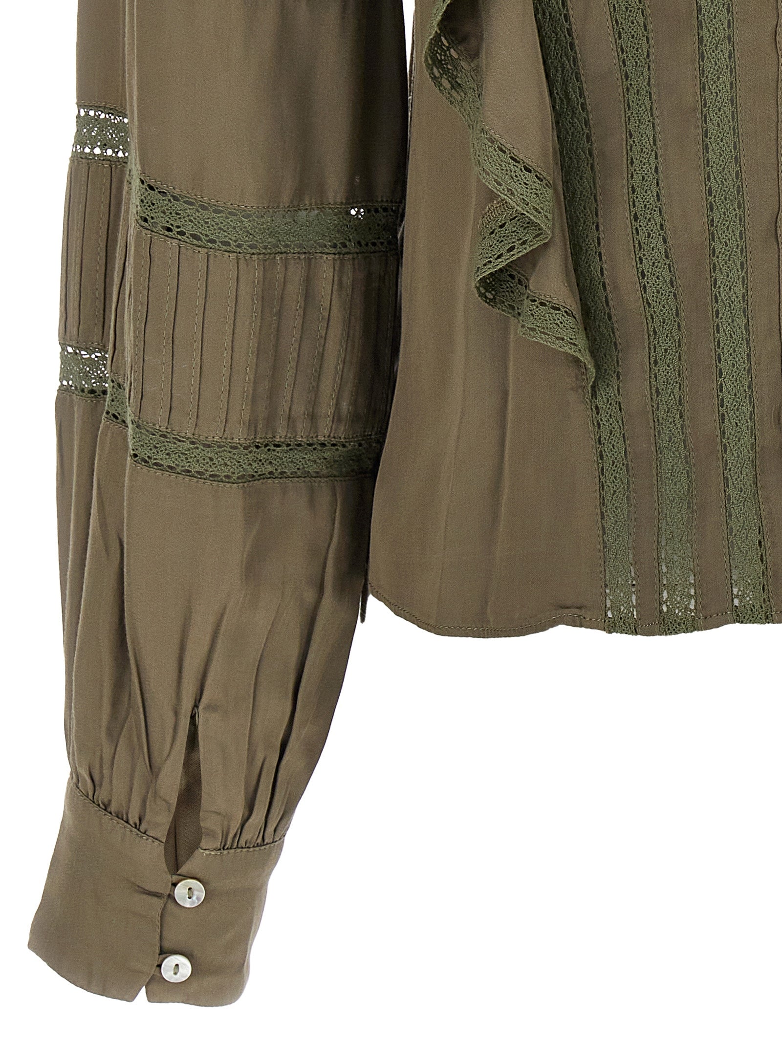 Blusa viscosa 'Devika' con inserti in pizzo e ricchezze, griglia, maniche cantaccanti e chiusura dei pulsanti.