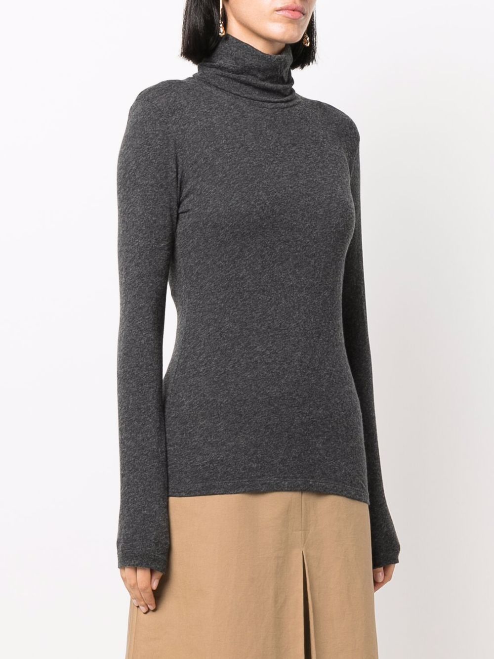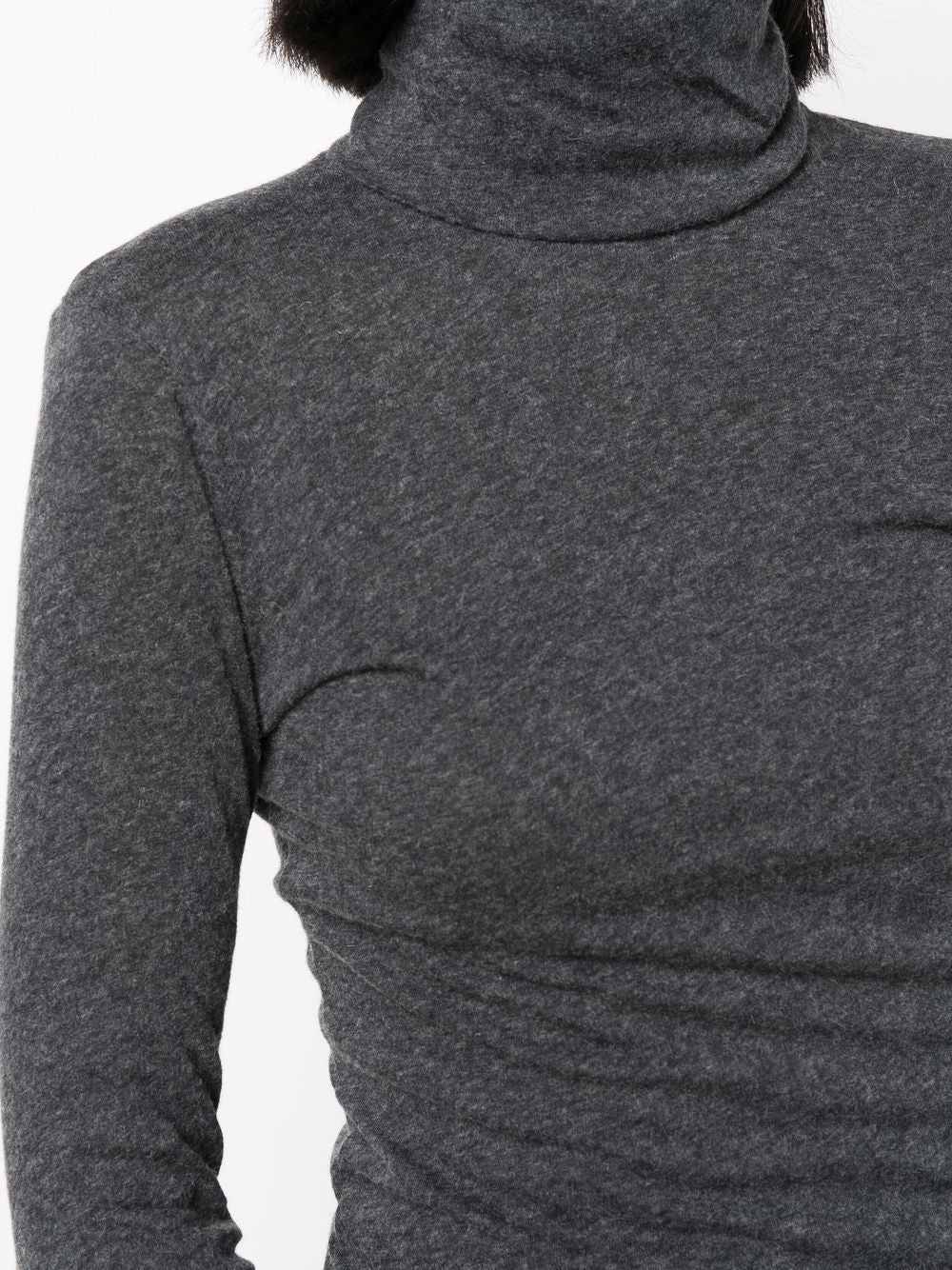 Grey Cotton-Cashmere Miscela a maniche lunghe a collo alto