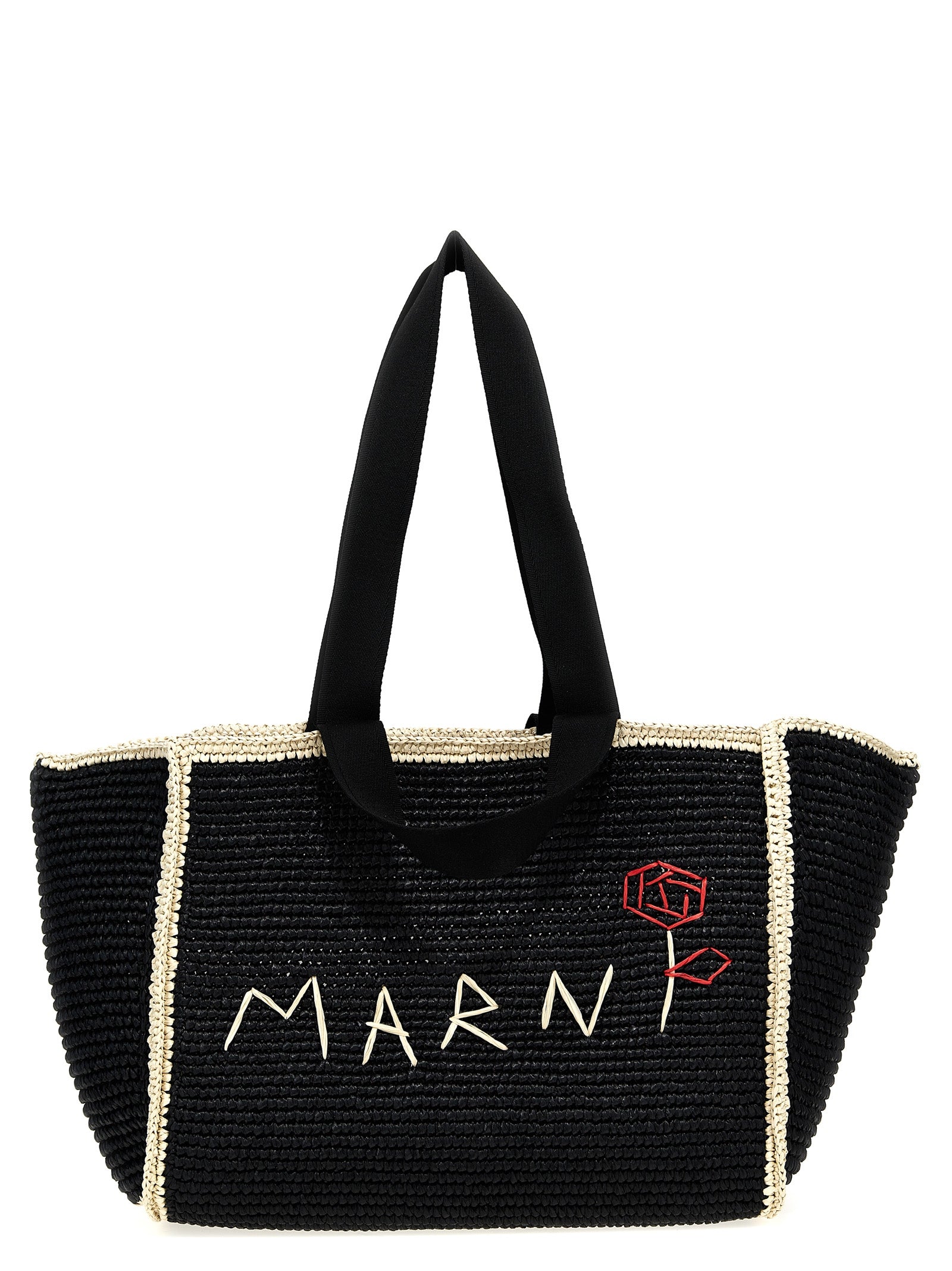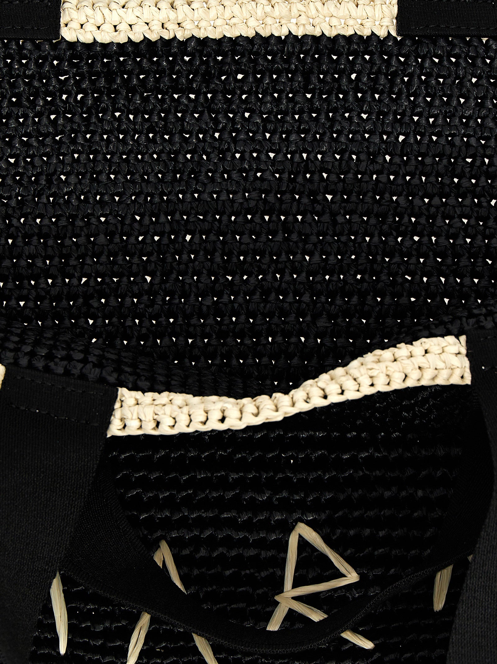 Macramé Raffia-Effect Effect Knit Shopping Borse con logo frontale ricamato e doppia maniglia.