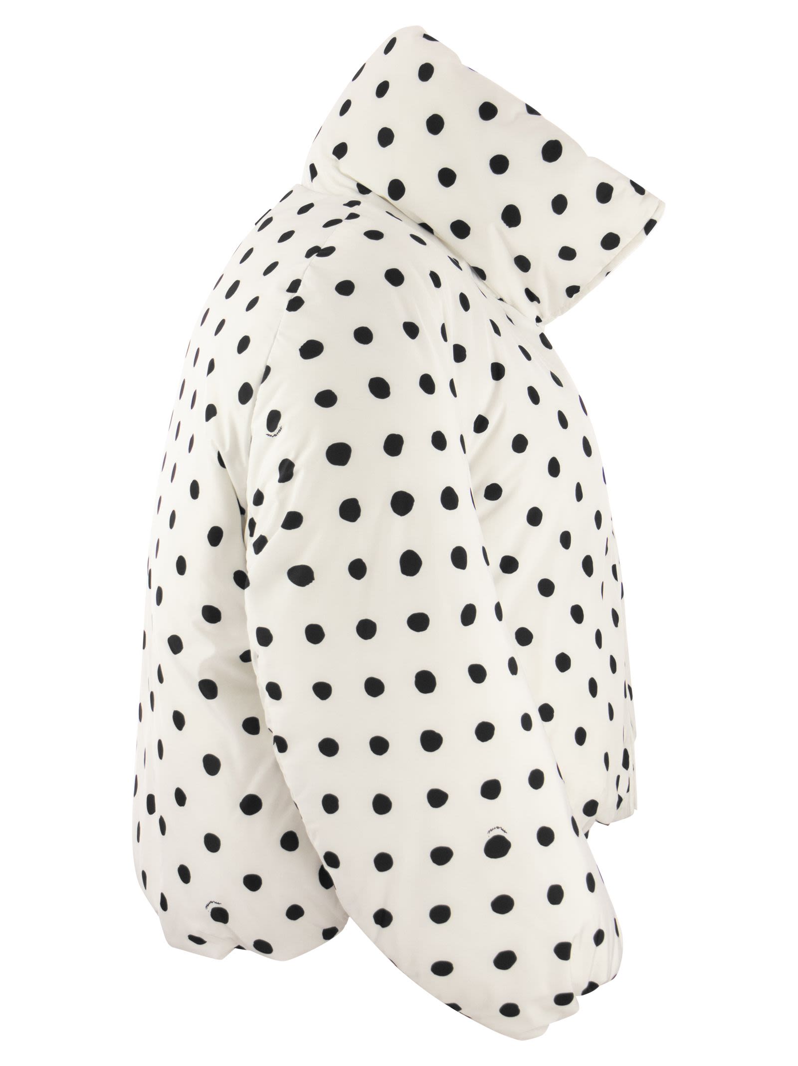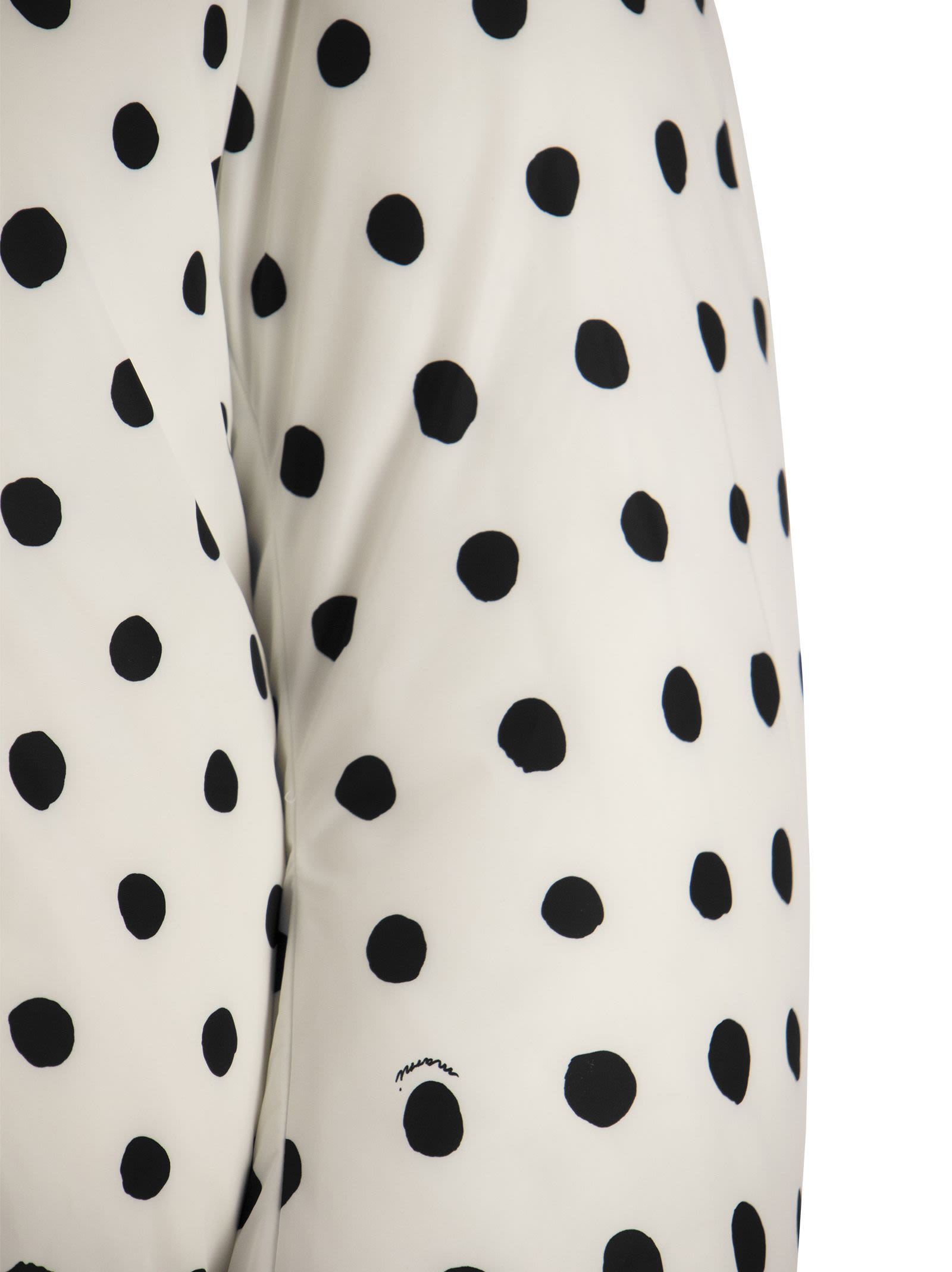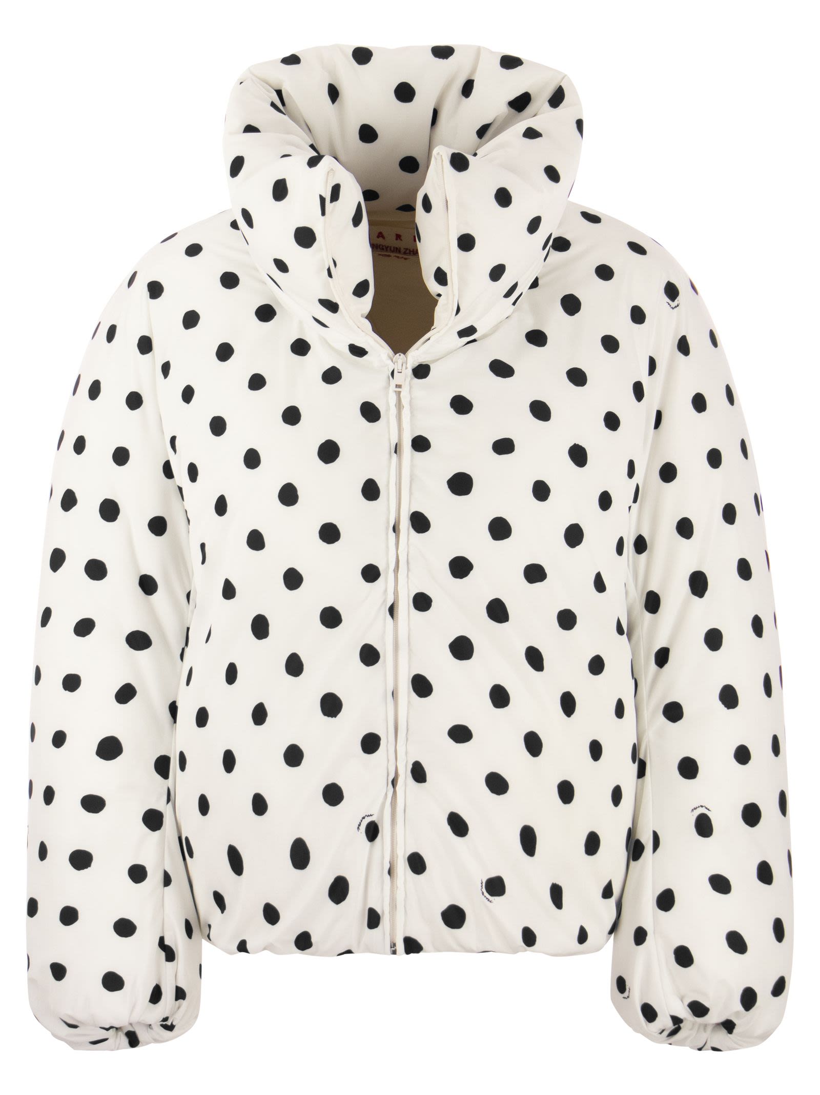 Giacca bozzolo giù con piccola stampa a pois. Colletto alto, tasche laterali con zip nascosta e tasca con zip al torace. La fissaggio zip e l'orlo coulbo. - foderato - etichetta in pelle esterna con logo Marni - Made in Italia - ID designer zip a doppio slider: PIMA0080AT UTP742 SDW01