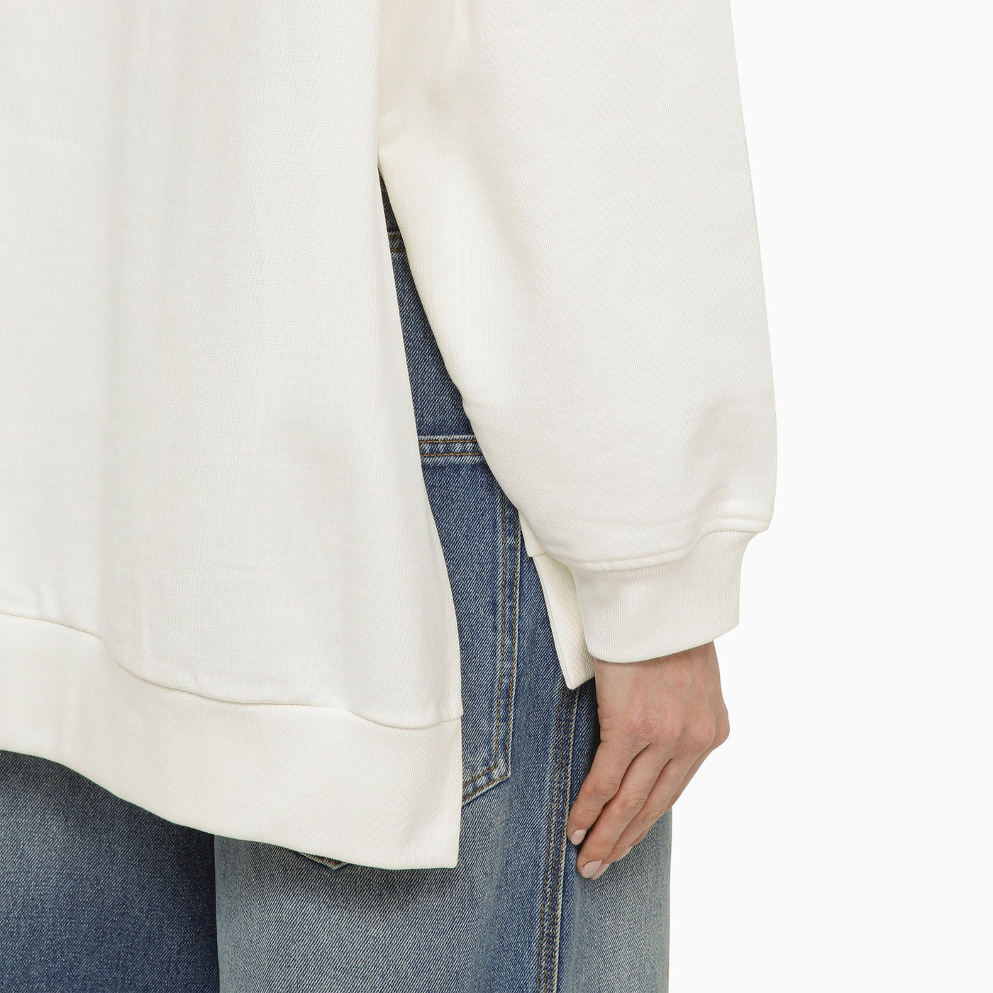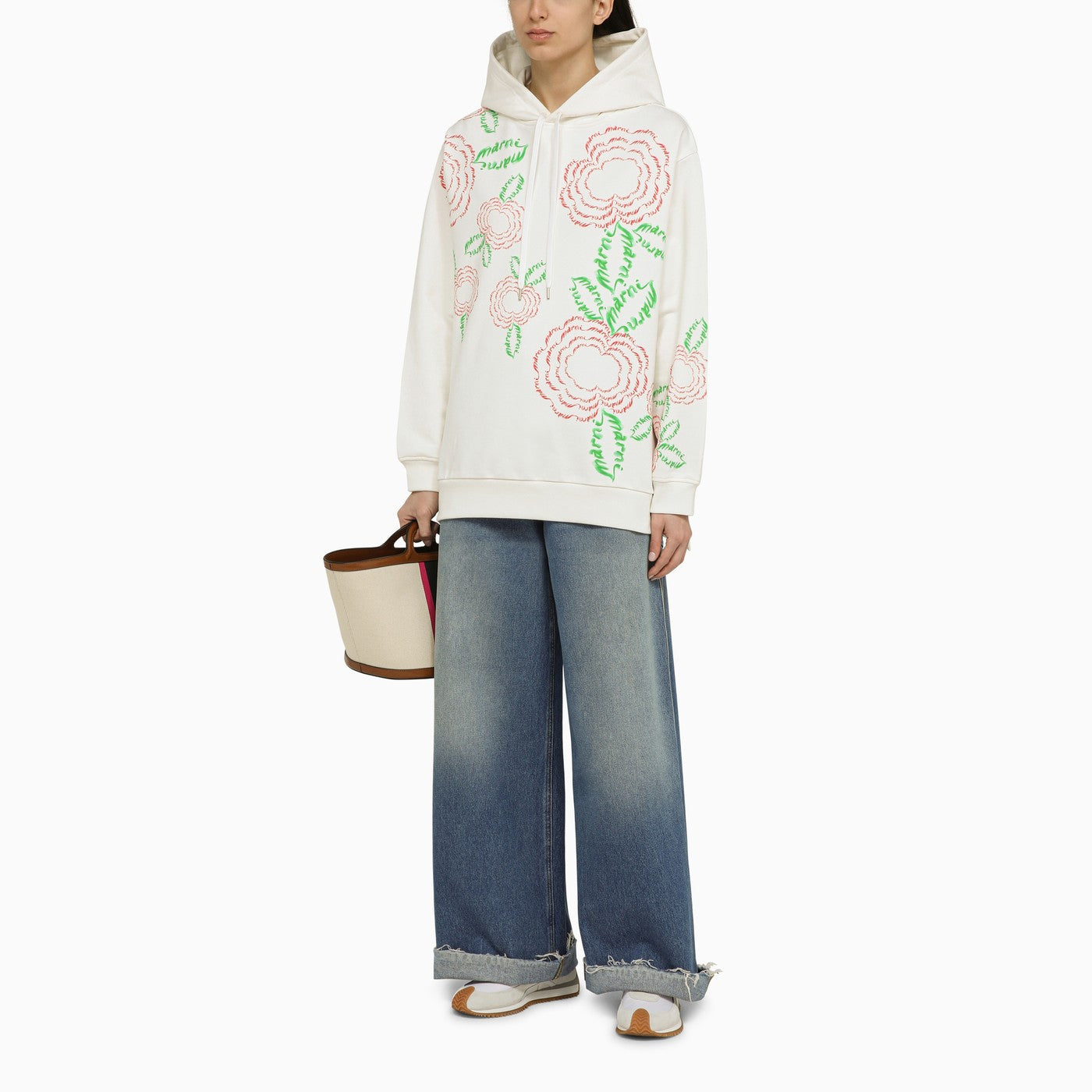 Felpa di cotone bianca di Marni con maniche lunghe, ricami anteriori con lettere logo di papavero ondulato, cofano, rivestimento a coste e vestibilità allentata.
