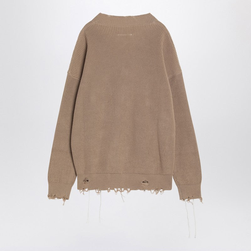 Mm6 maison margiela beige cotone cardigan con usura