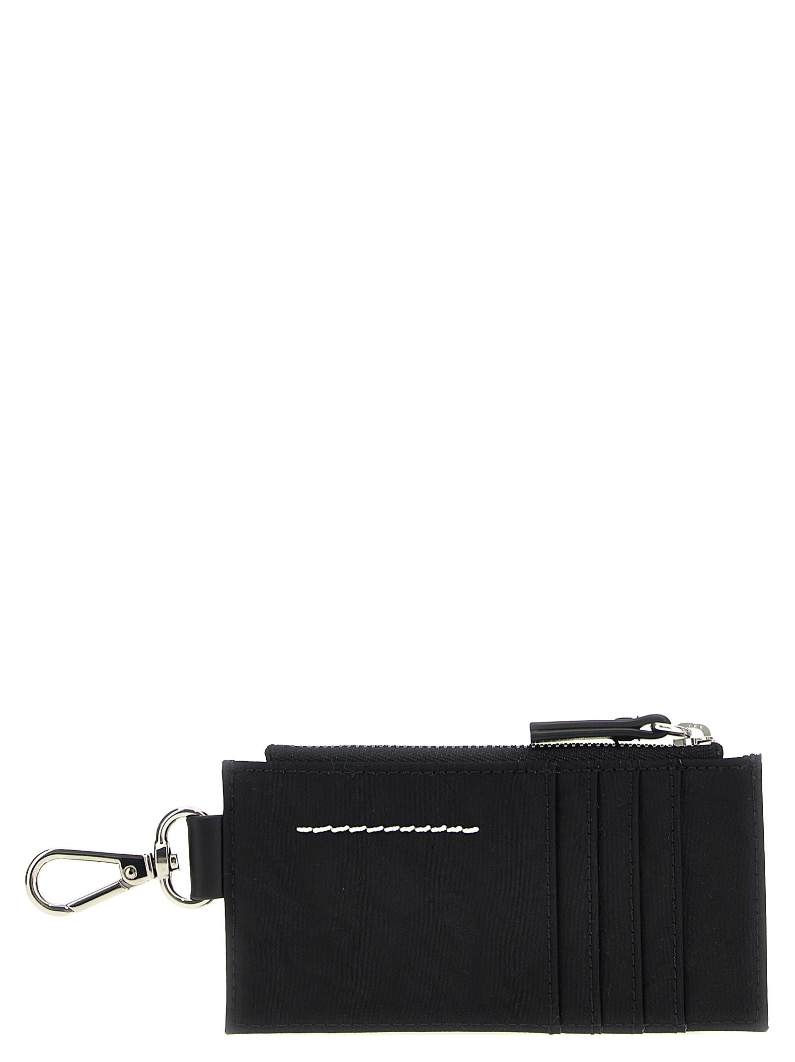 Porta della scheda in nylon 'firma' con ricamo a logo anteriore, chiusura zip, gancio a scatto laterale.