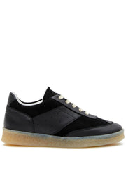 Sneaker a basso contenuto di replica di MM6 Maison Margiela con pelle di vitello, patch di logo sulla lingua, dettagli perforati, punta rotonda, fissaggio del pizzo anteriore e suola in gomma piatta.