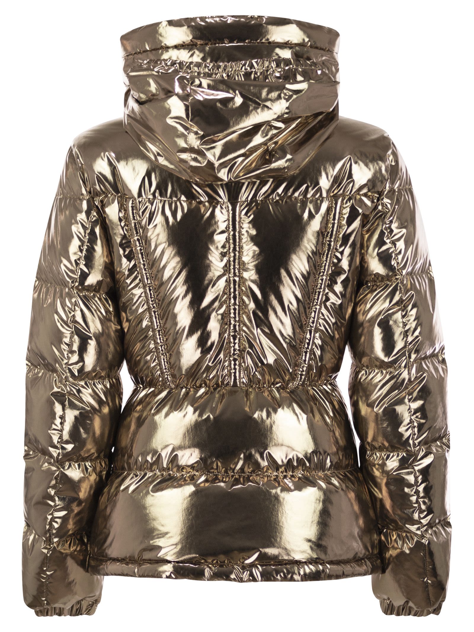 La giacca down Douros, realizzata in un innovativo tessuto in nylon, è un indumento che gioca con trame. Questo materiale estremamente morbido ha una finitura lucida e metallica che cattura la luce. La giacca corta vanta un cappuccio rimovibile per adattarsi alle condizioni meteorologiche. La vita e l'orlo elasticizzate creano una silhouette montata e femminile. - Realizzato in nylon metallizzato - fodera saison lonue - modello imbottito - cappuccio rimovibile - chiusura a zip - tasche zippate - polsini elastici - vita elasticizzata e orlo inferiore - Slimt fit - spalle strette e busto - ID designer in vita stretta: J20931A001615980V M94