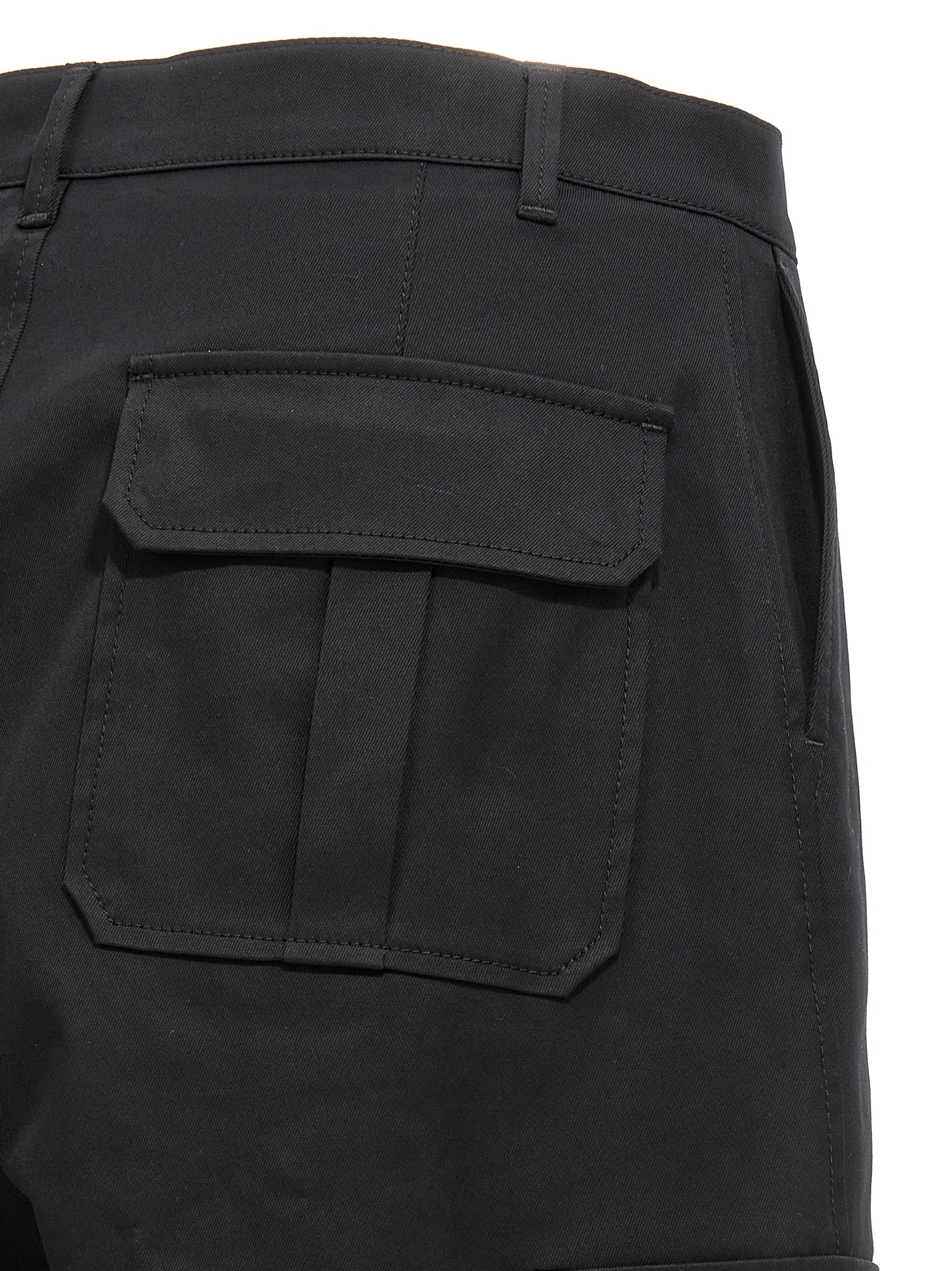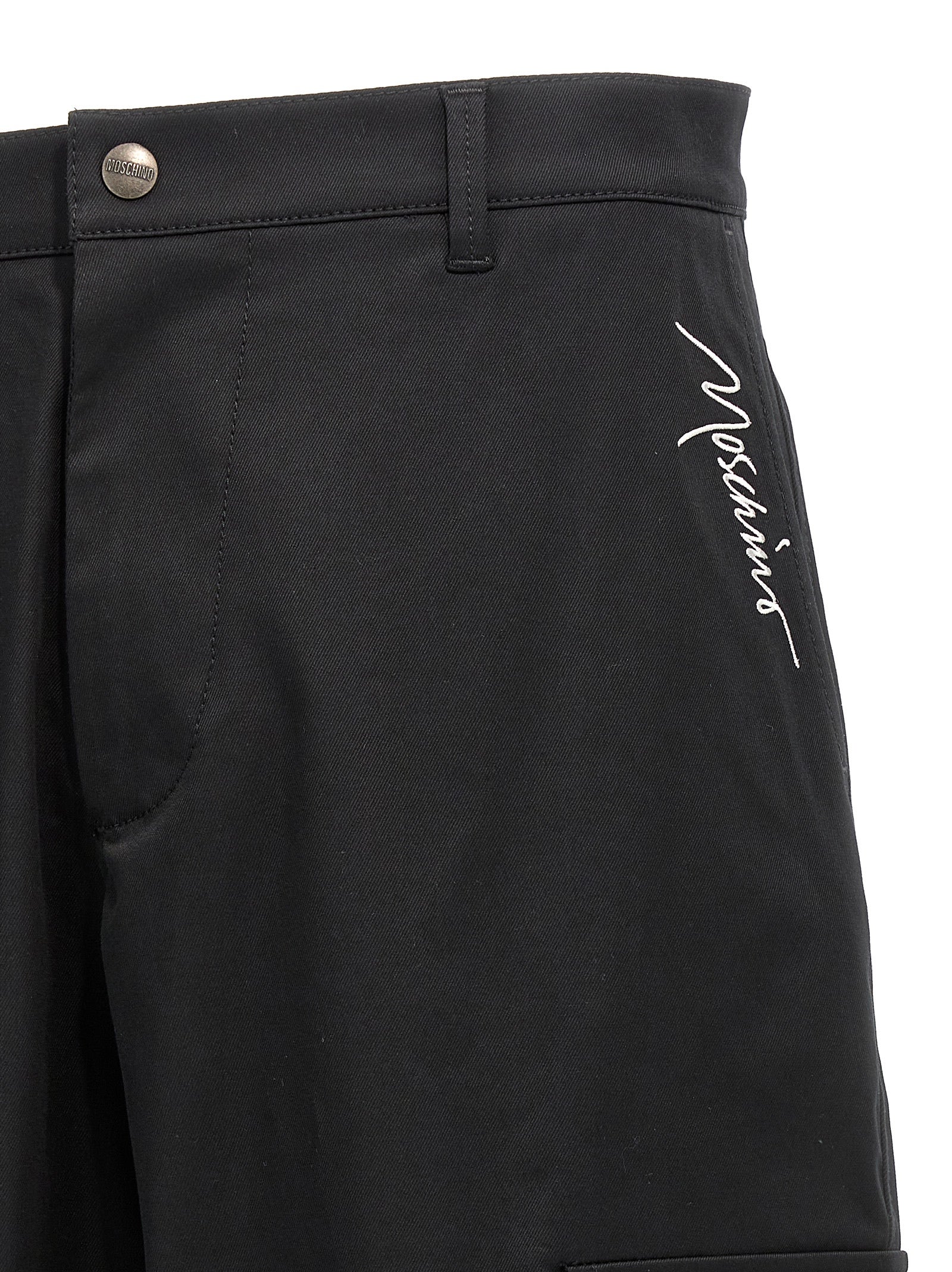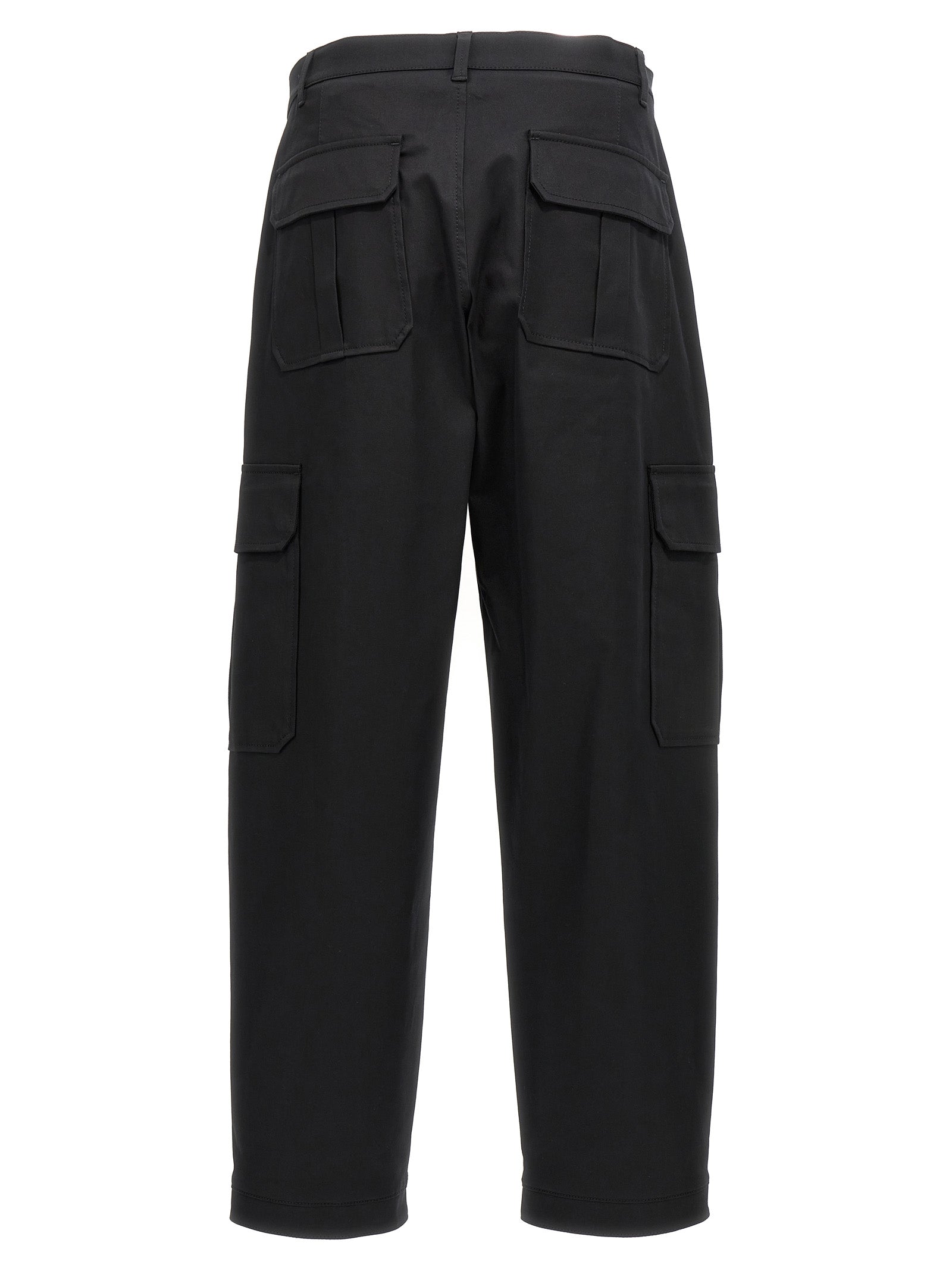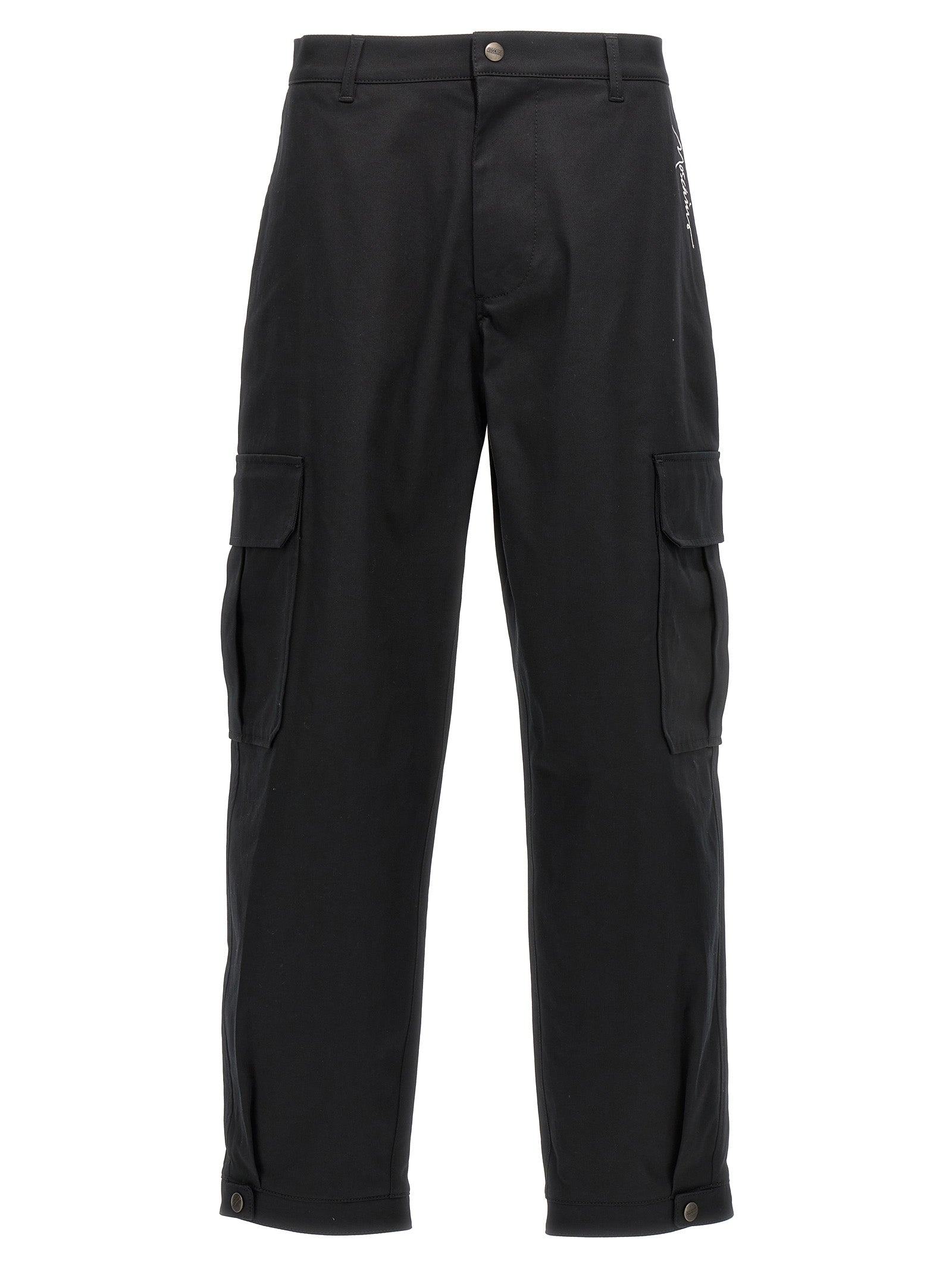 Pantaloni di cotone con ricamo logo, modello di carico con tasche multipli. Chiusura zip e pulsanti.