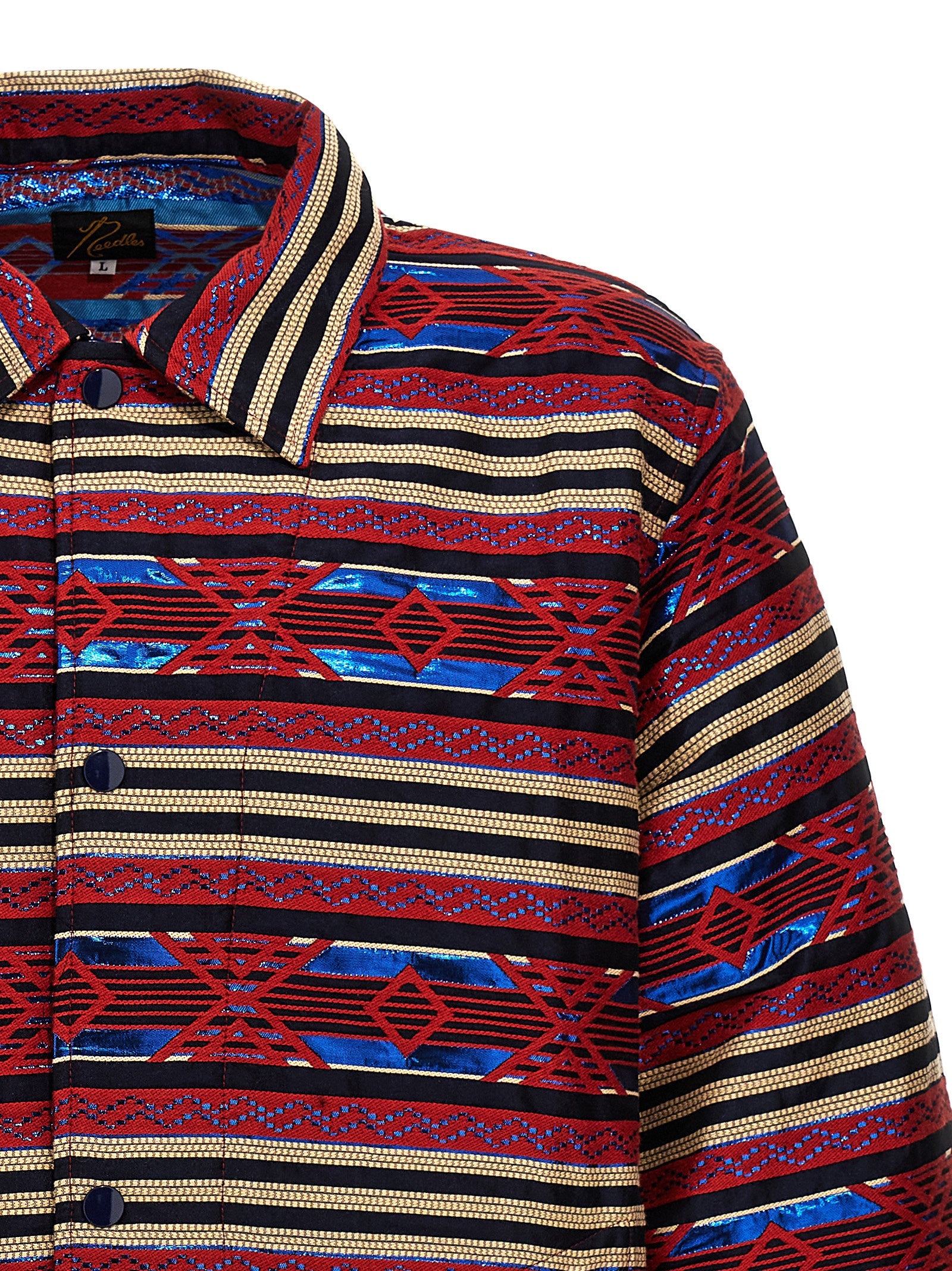 Giacca di miscela di cotone con motivo, chiusura dei bottoni, tasche, maniche lunghe con polsini elastici, corse regolabili sull'orlo.