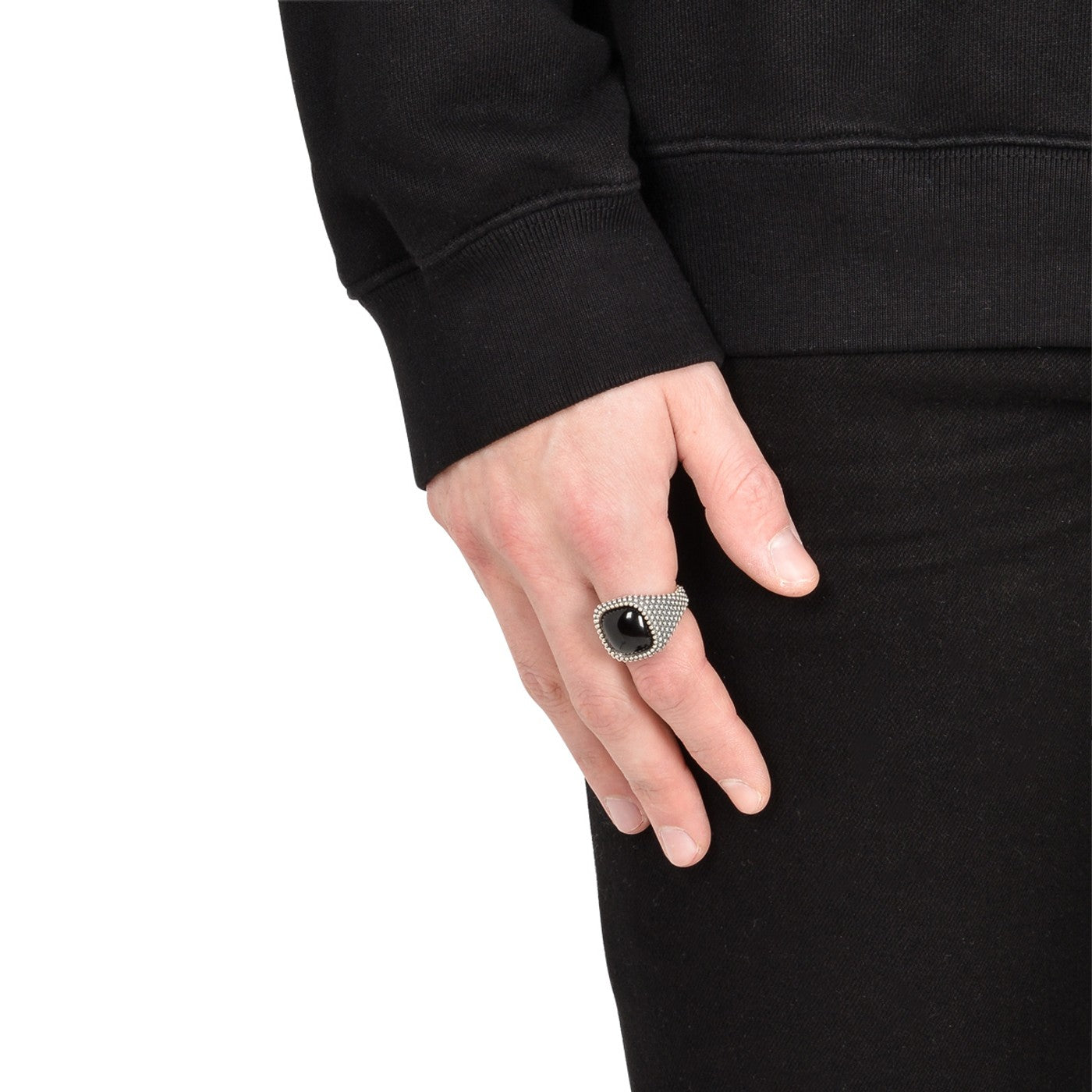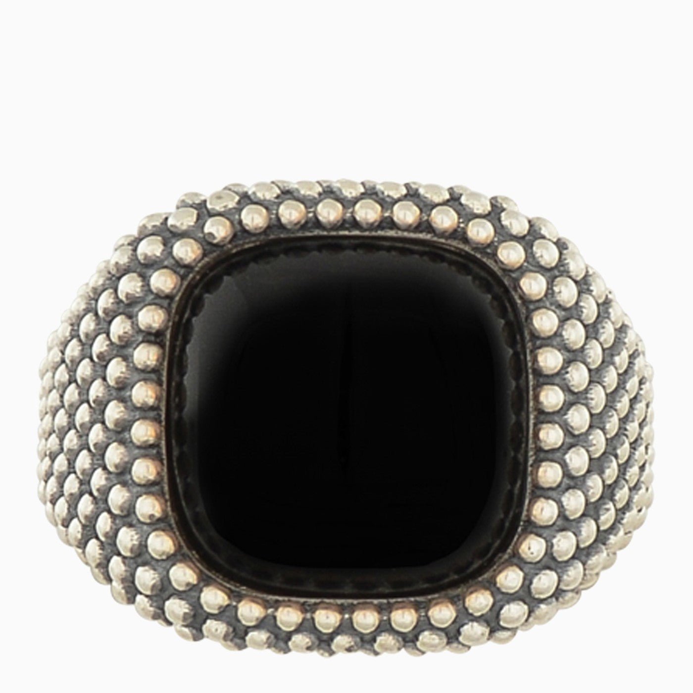 NOVE25 Chevalier Quadrato Puntinato con Pietra Onyx Ring