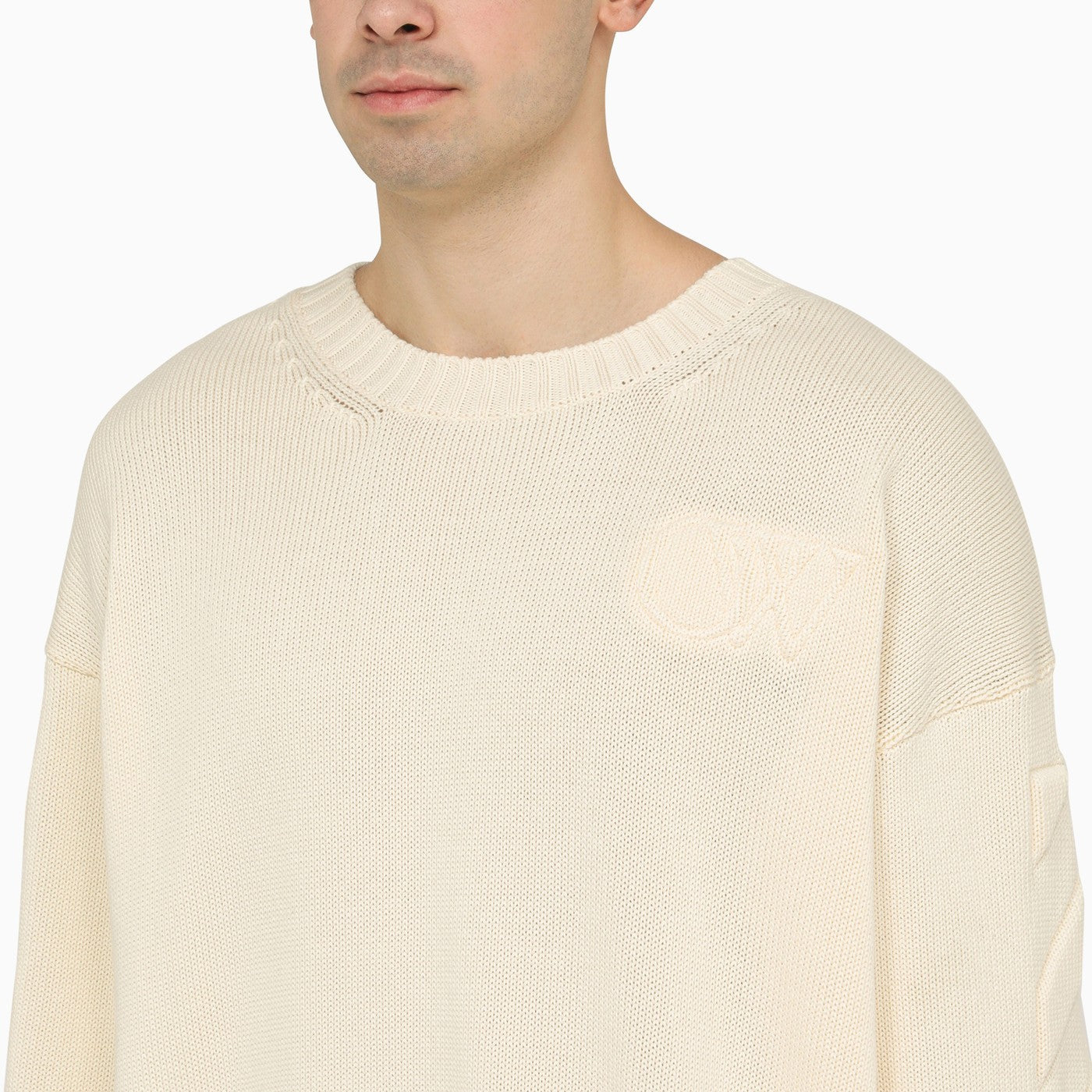 Off White ™ Cream Crewneck Felda con ricamo diagonale