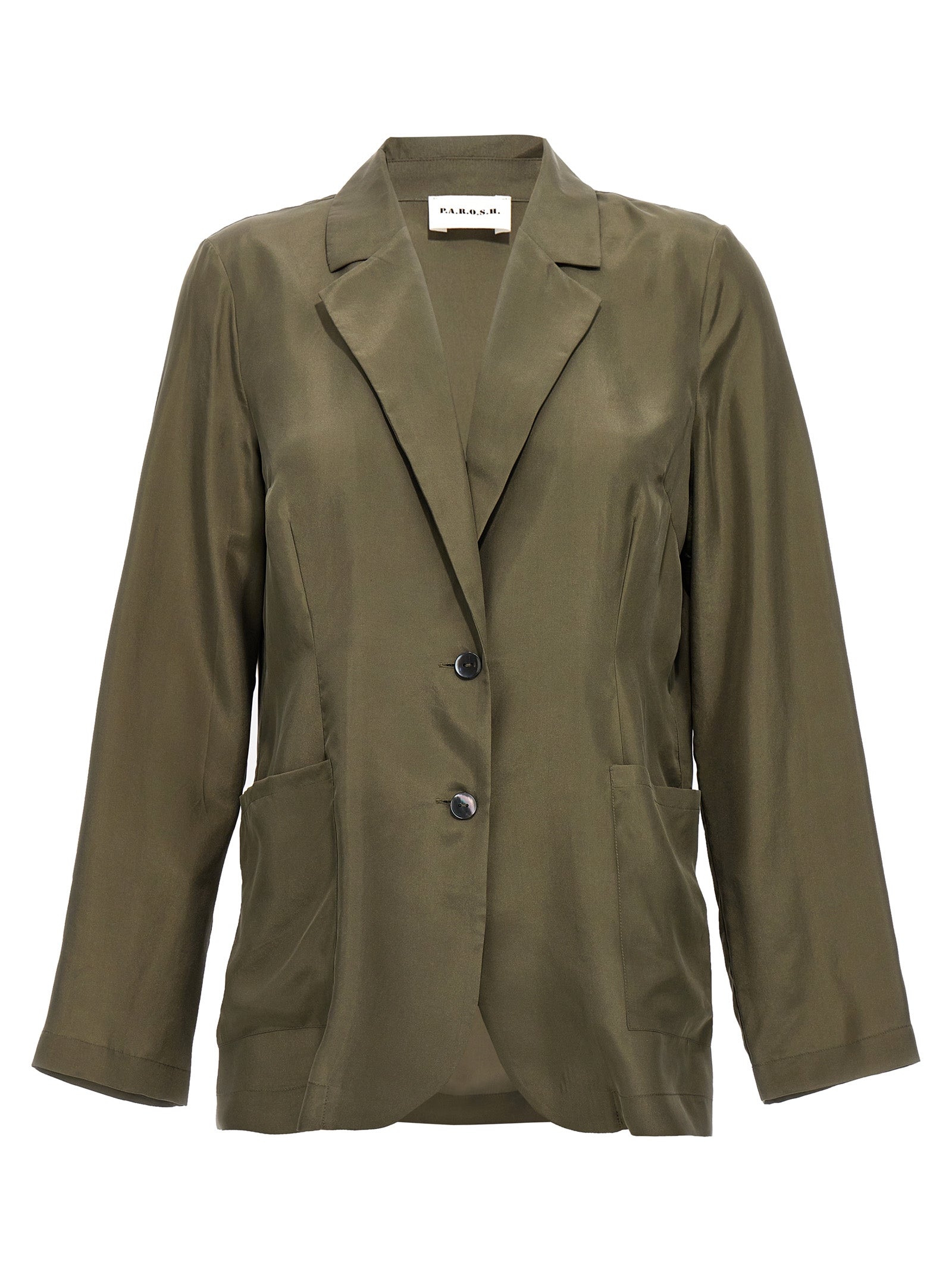 Giacca di seta 'Habotay' con chiusura a bottone, tasche e maniche lunghe.