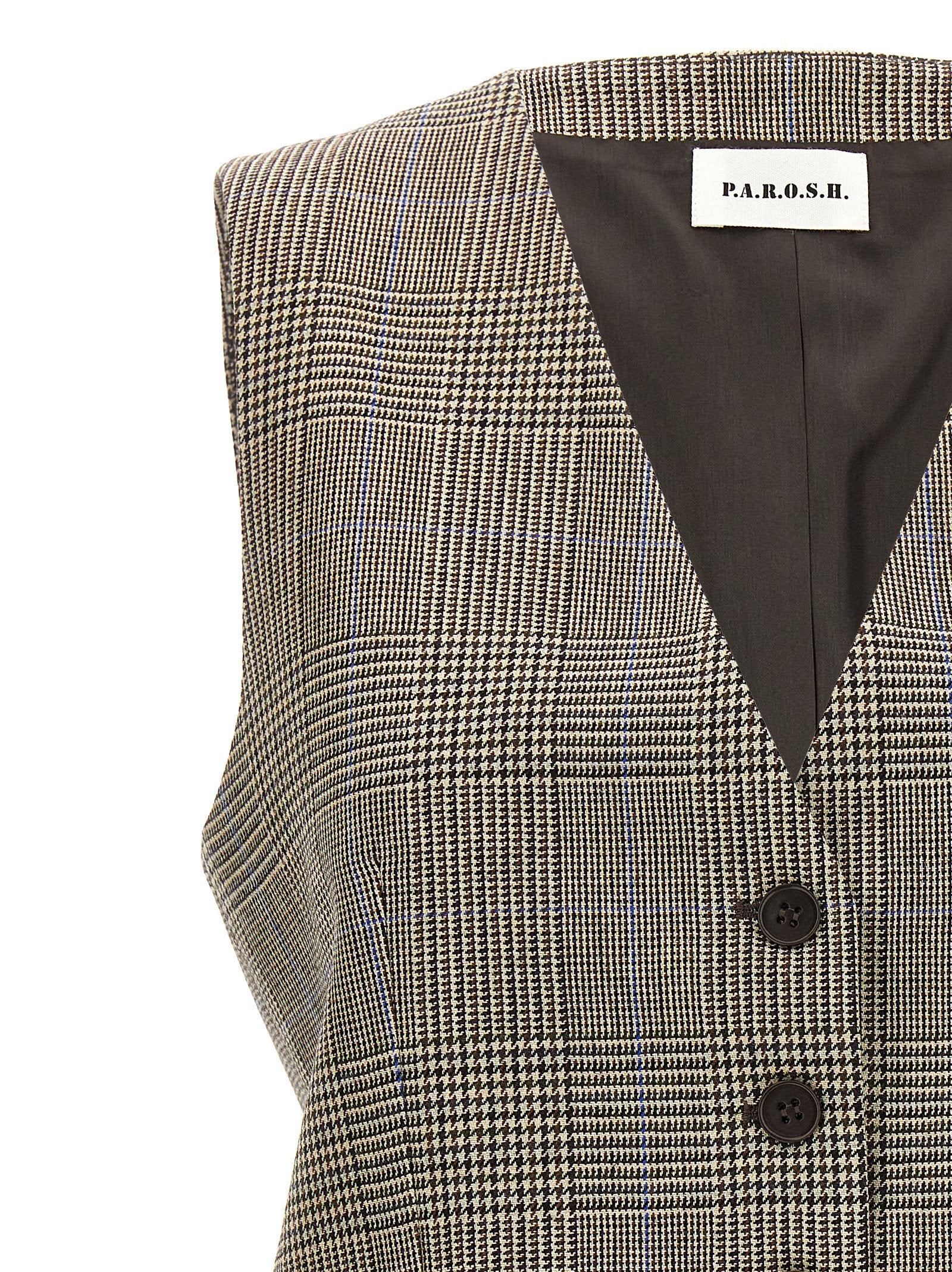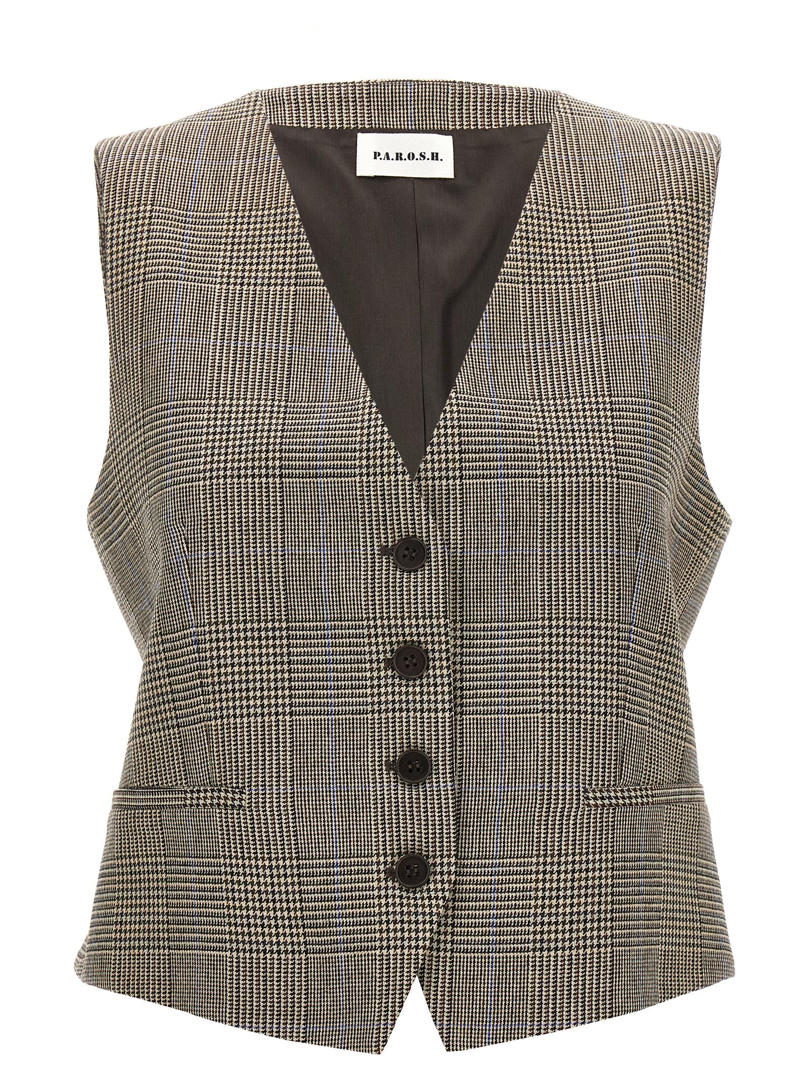 Viscosio di Prince of Wales e giubbotto "rilassati di lana con chiusura a bottone, cinghia regolabile sul retro.