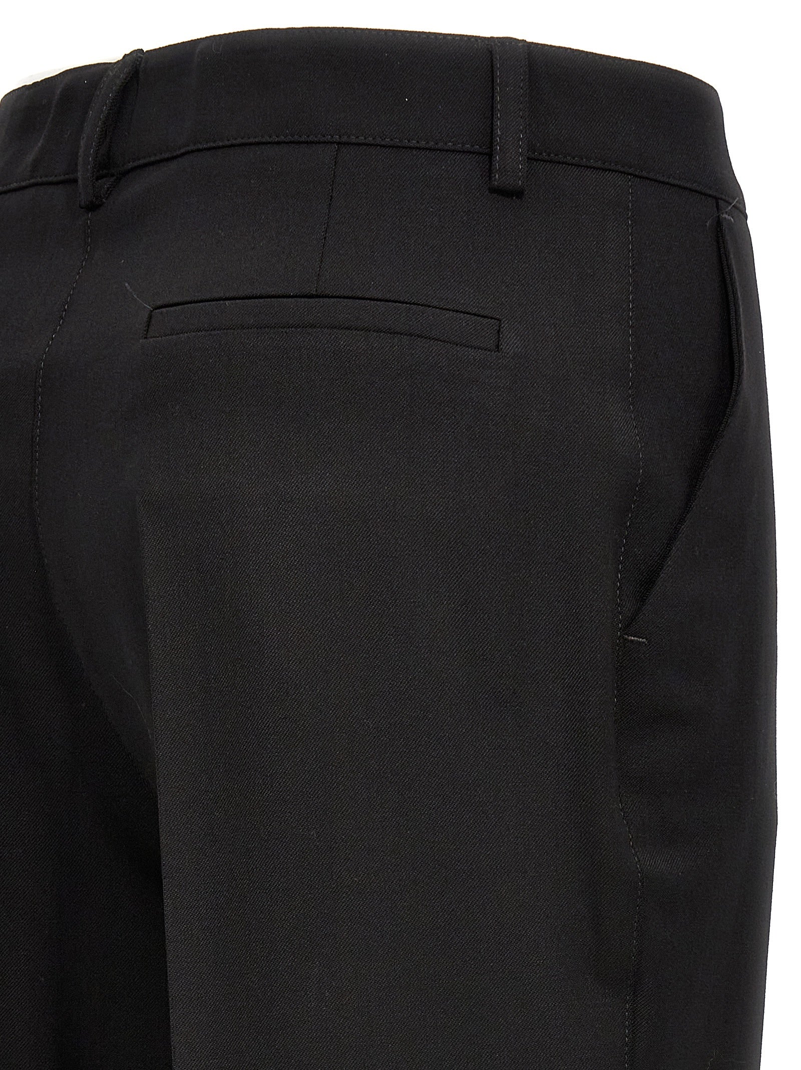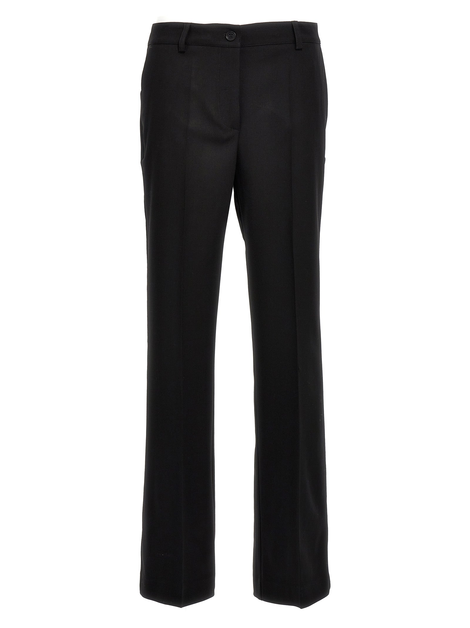 Pantaloni di lana elastica di Sallia con gamba sciolta con piega centrale, chiusura a zip e bottoni, tasche.